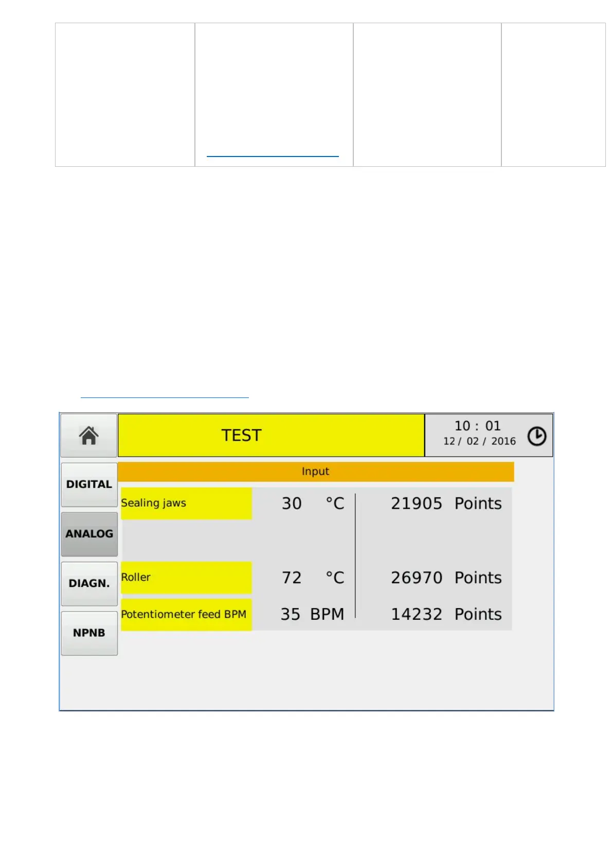 In this environment you can view the current status of the analog inputs of the system.