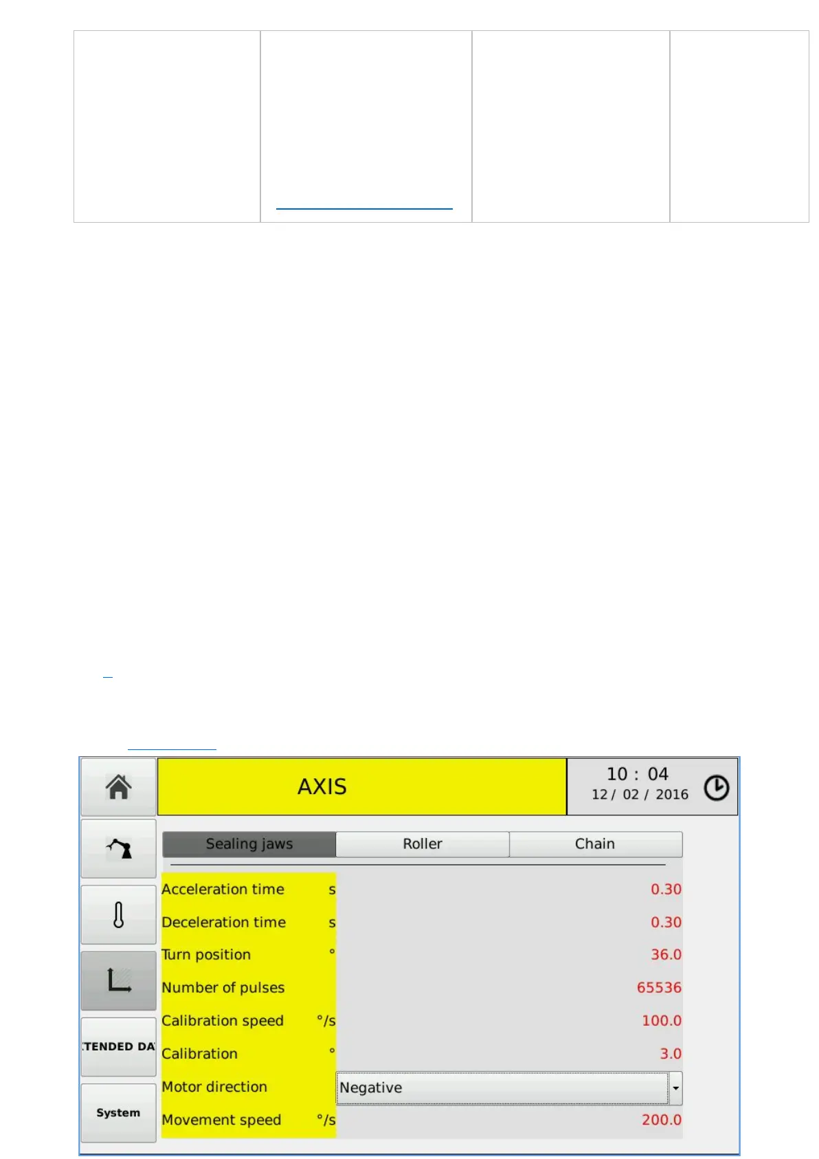 ● extended data (environment control of the axis parameters)