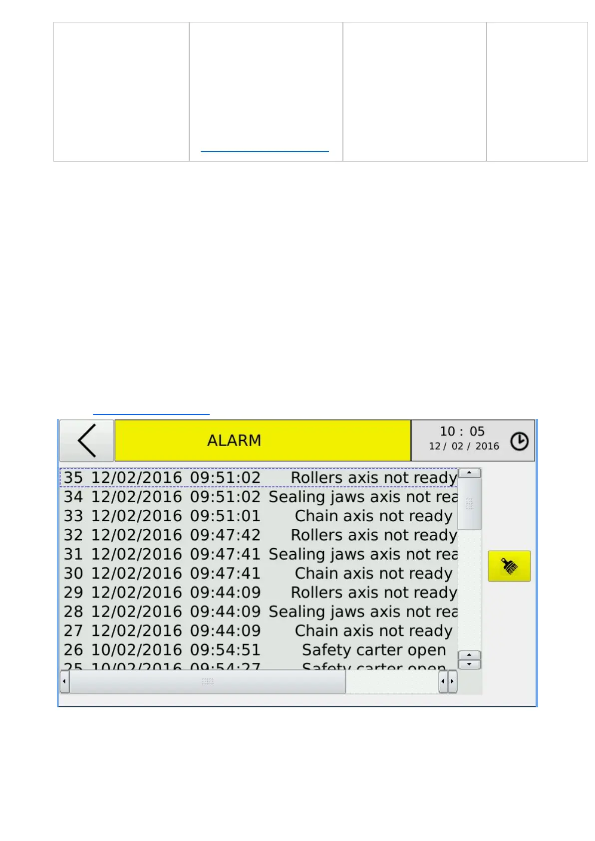 In this environment you can see a table that displays a list of the alarms recorded by the