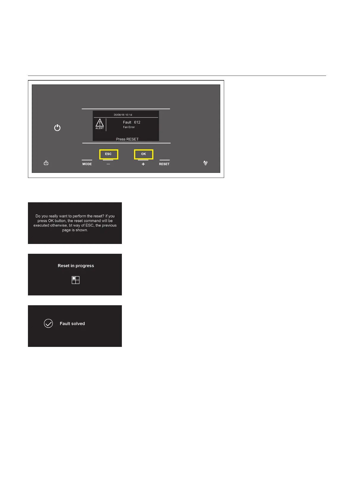 2 To reset the fault code, press the RESETbutton.