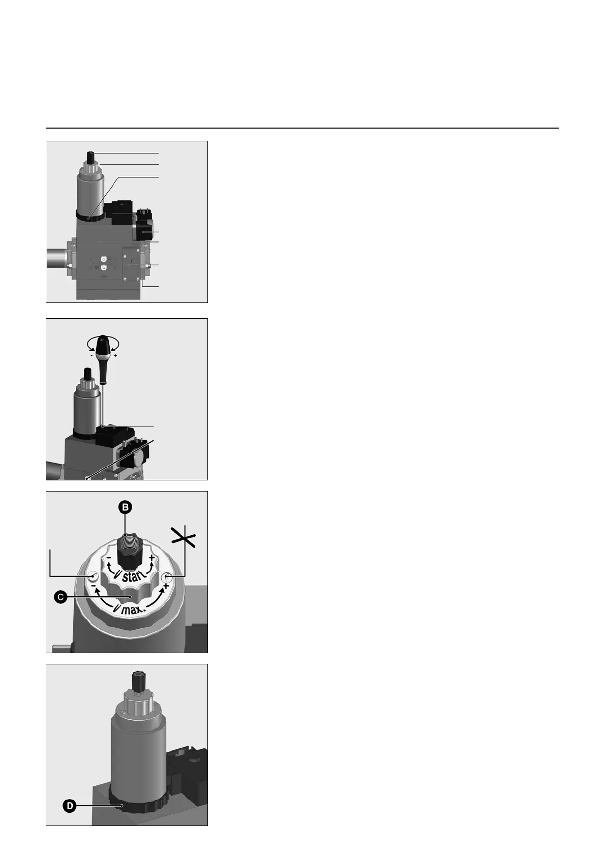 • Gasdebiet verminderen door ring D,
