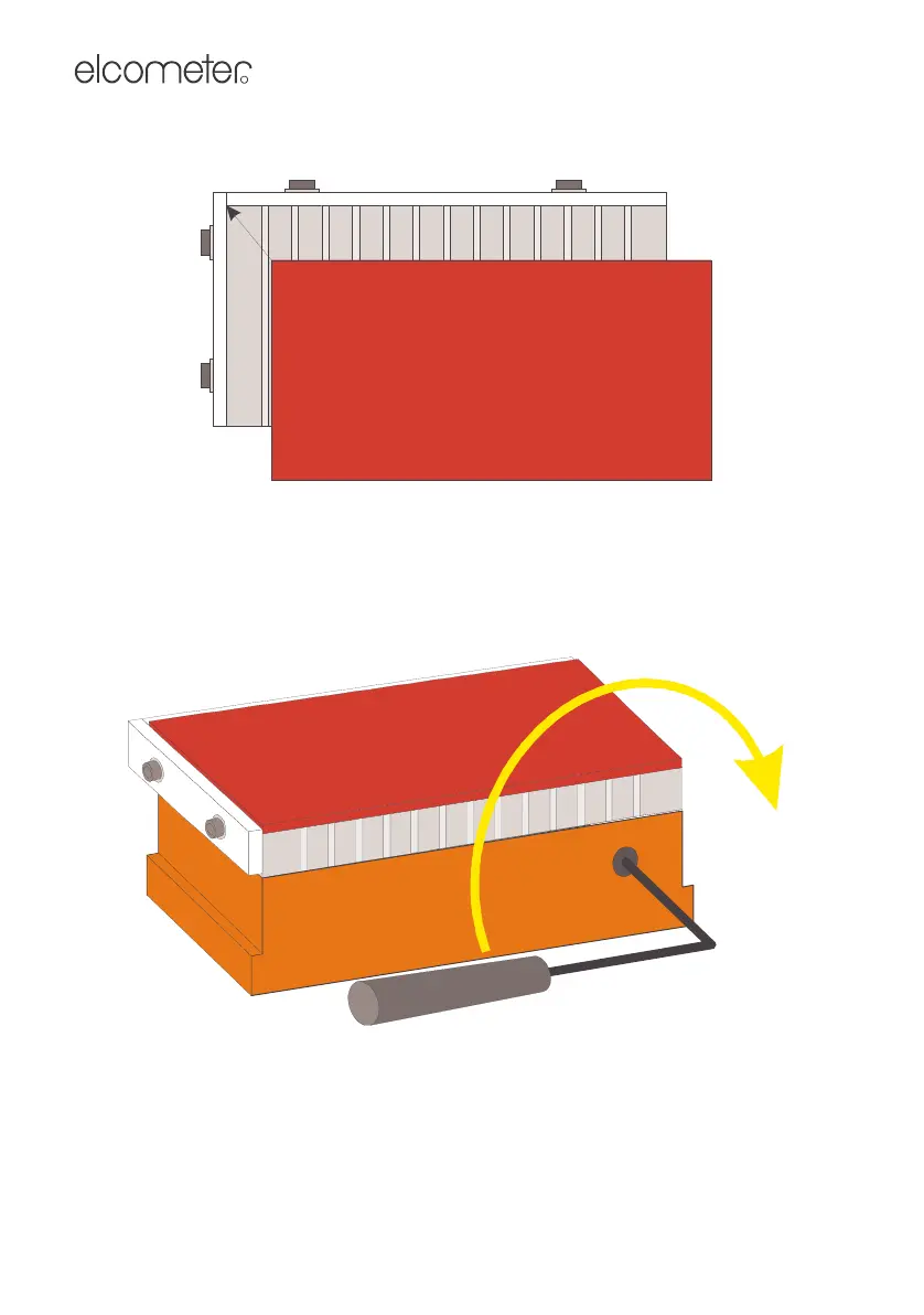 2. Place the specimen onto the table in contact with the two stop blocks if