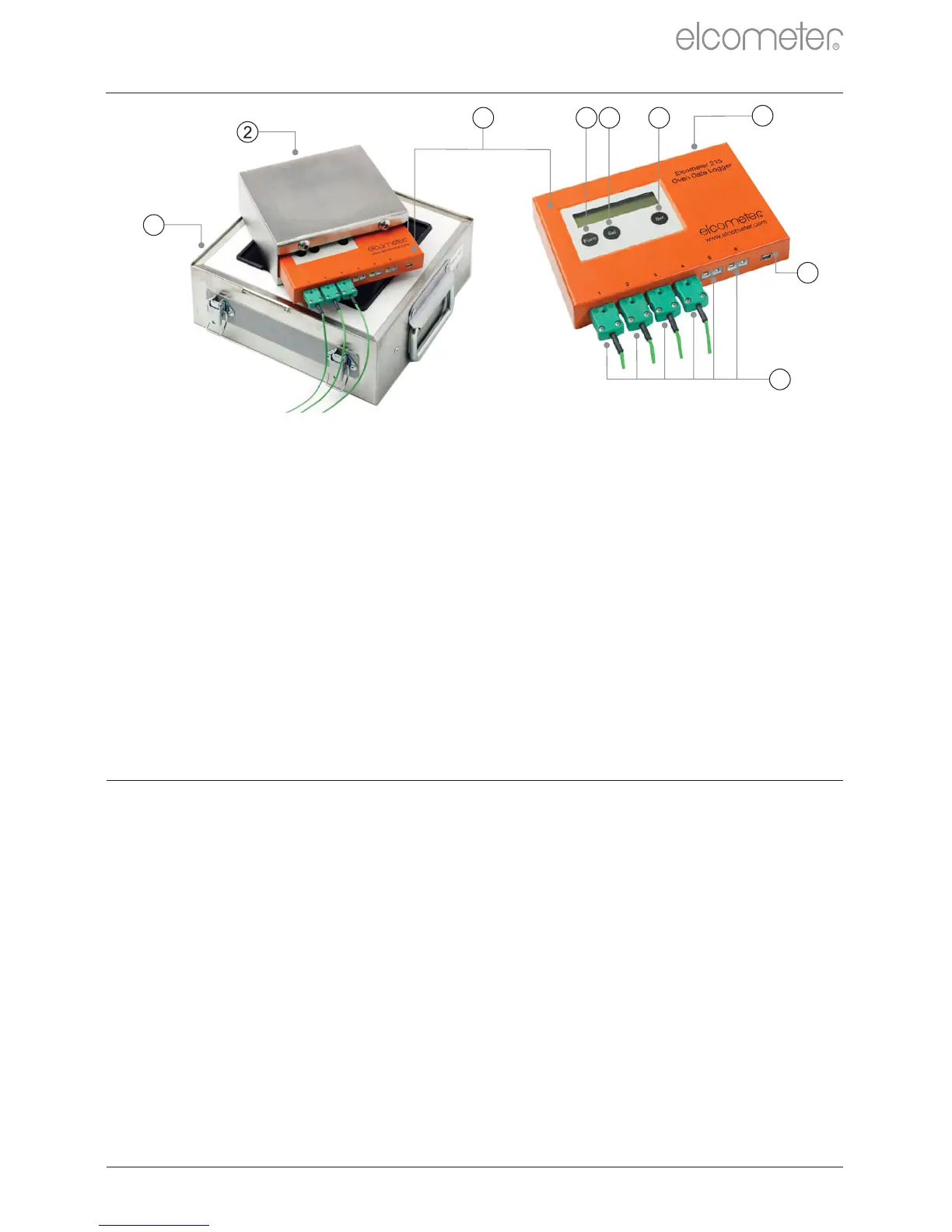 Elcometer 215 - 1 本体外観; 2 梱包内容