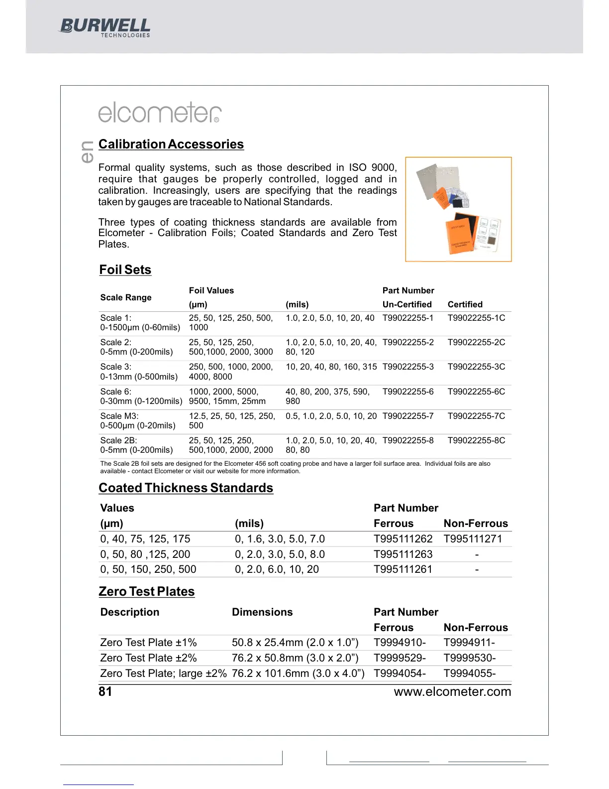 Elcometer - Calibration Foils; Coated Standards and Zero Test