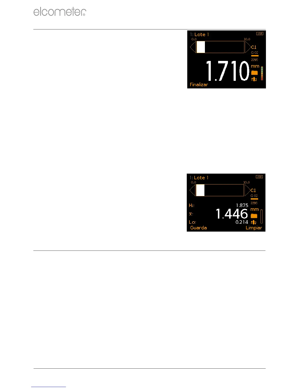 '<0.15mm' o '>2.50mm' ('<6mils' o '>98mils') indican una lectura situada fuera del