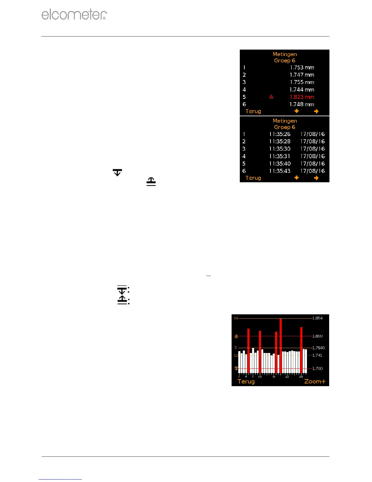 Als de groep meer metingen bevat dan toonbaar op één scherm, dan