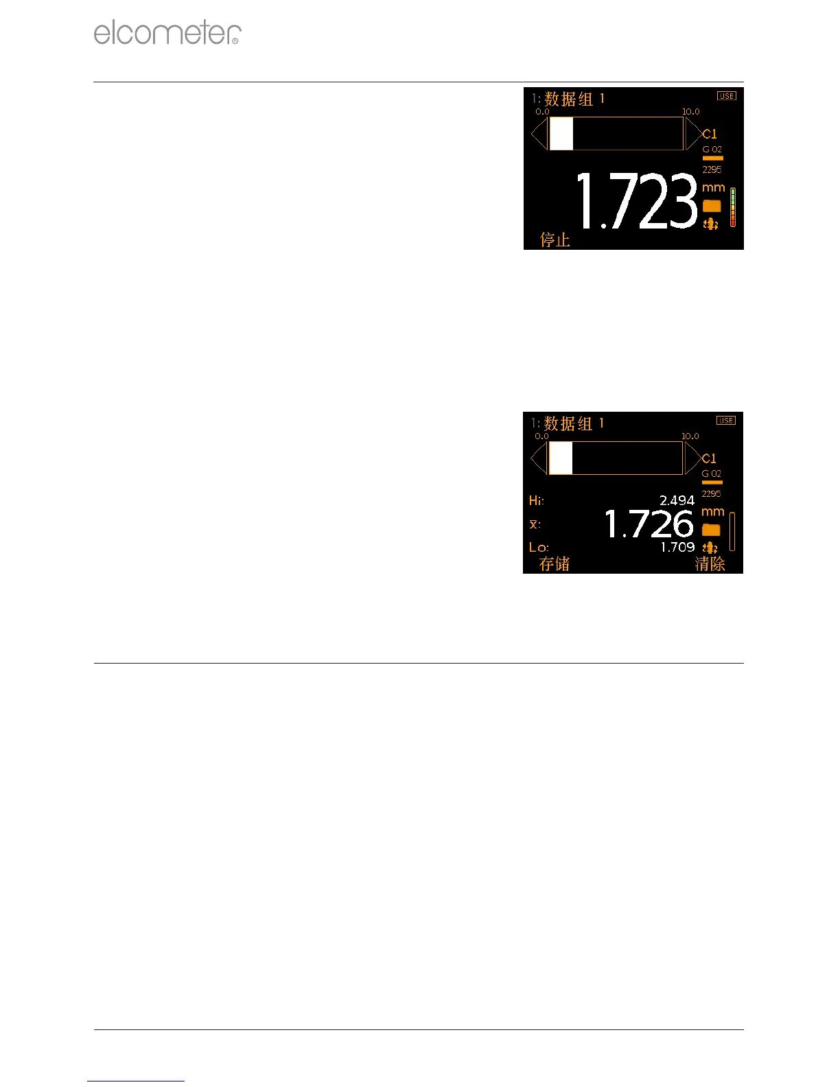 '<0.15mm' 或 '>2.50mm' ('<6mils' 或 '>98mils') 示头范围的读当使用