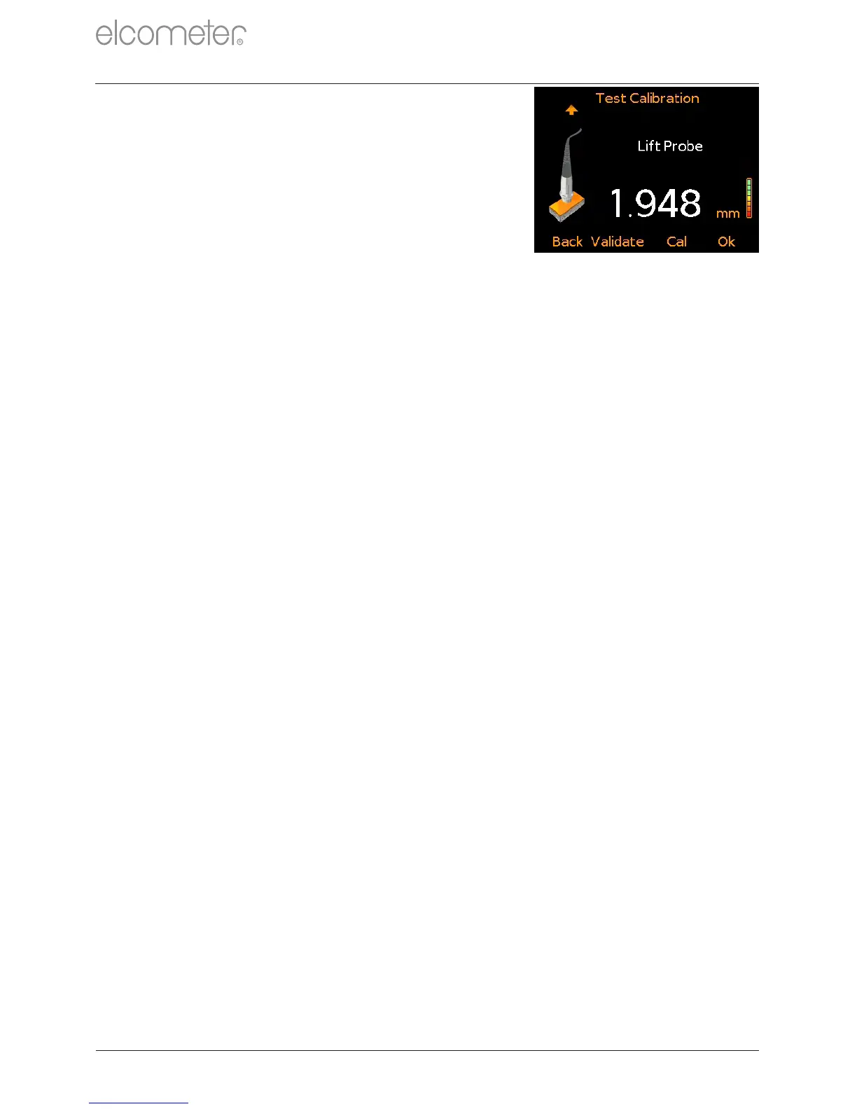 date, ‘Cal’ to re-calibrate the gauge or ‘Ok’ to exit the test