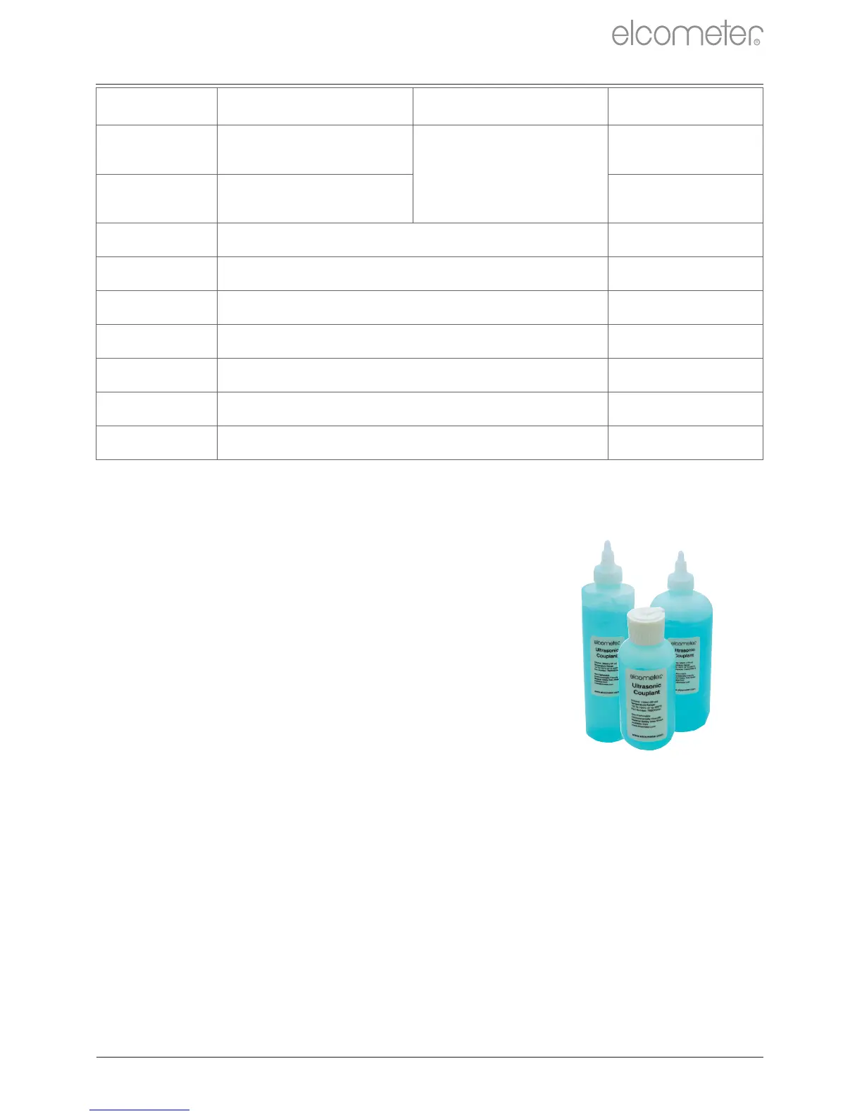 Note: Material Safety Data Sheets for the ultrasonic couplant supplied by Elcometer are