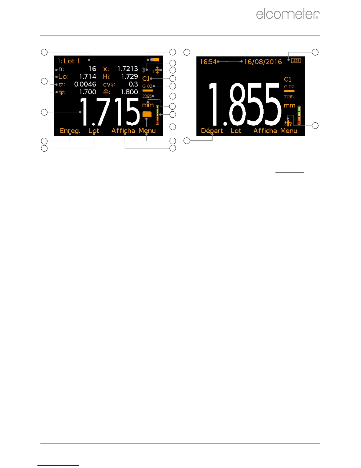 Limites activées (avec numéro d'indice de limite) - Rouge : limite dépassée