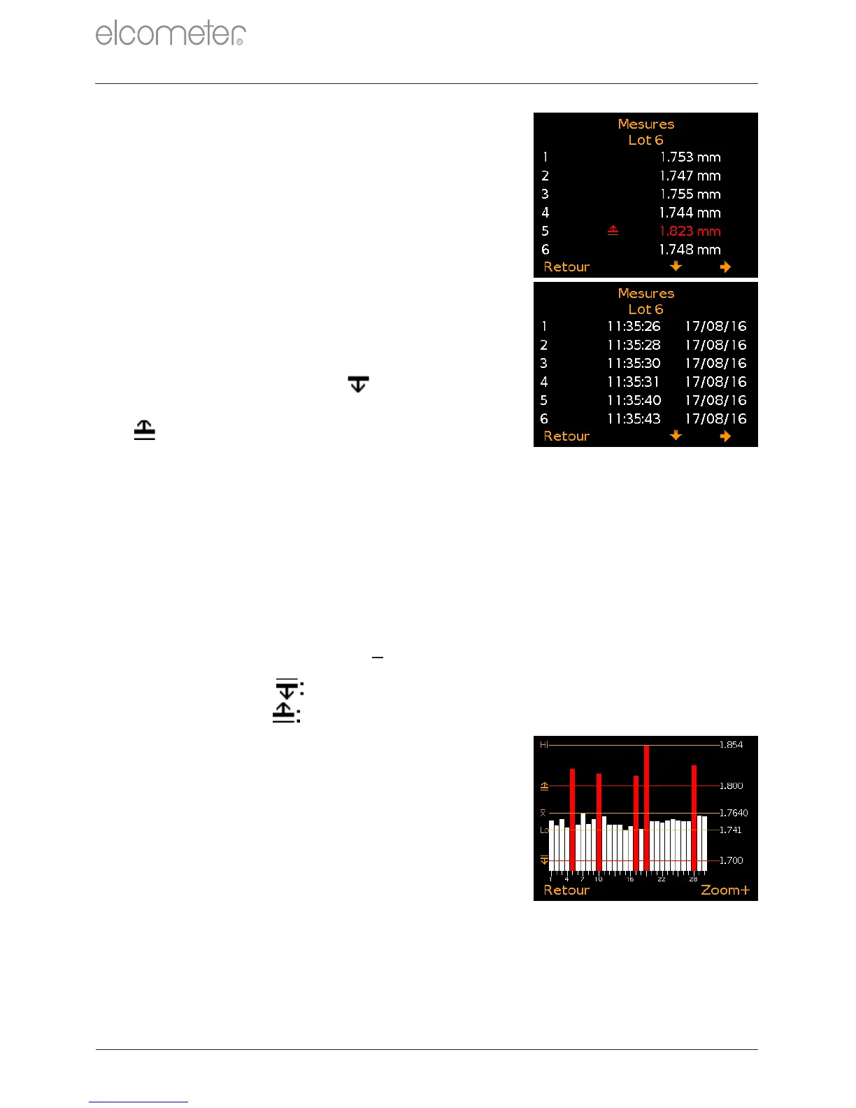 Si le nombre de mesures dépasse la capacité d'affichage de l'écran, les