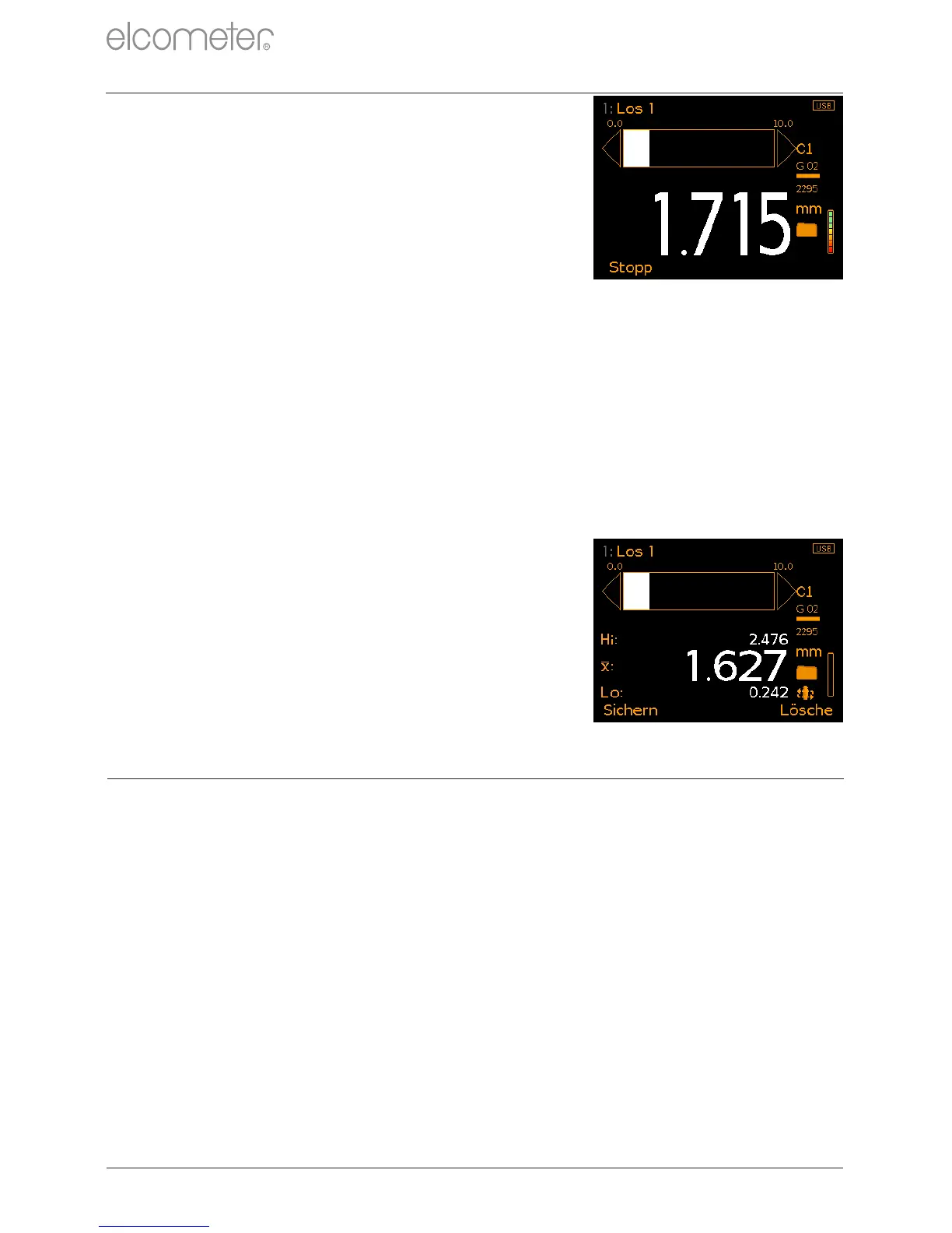 6 Drücken Sie ‘Stopp’, um das Erfassen von Messwerten zu beenden