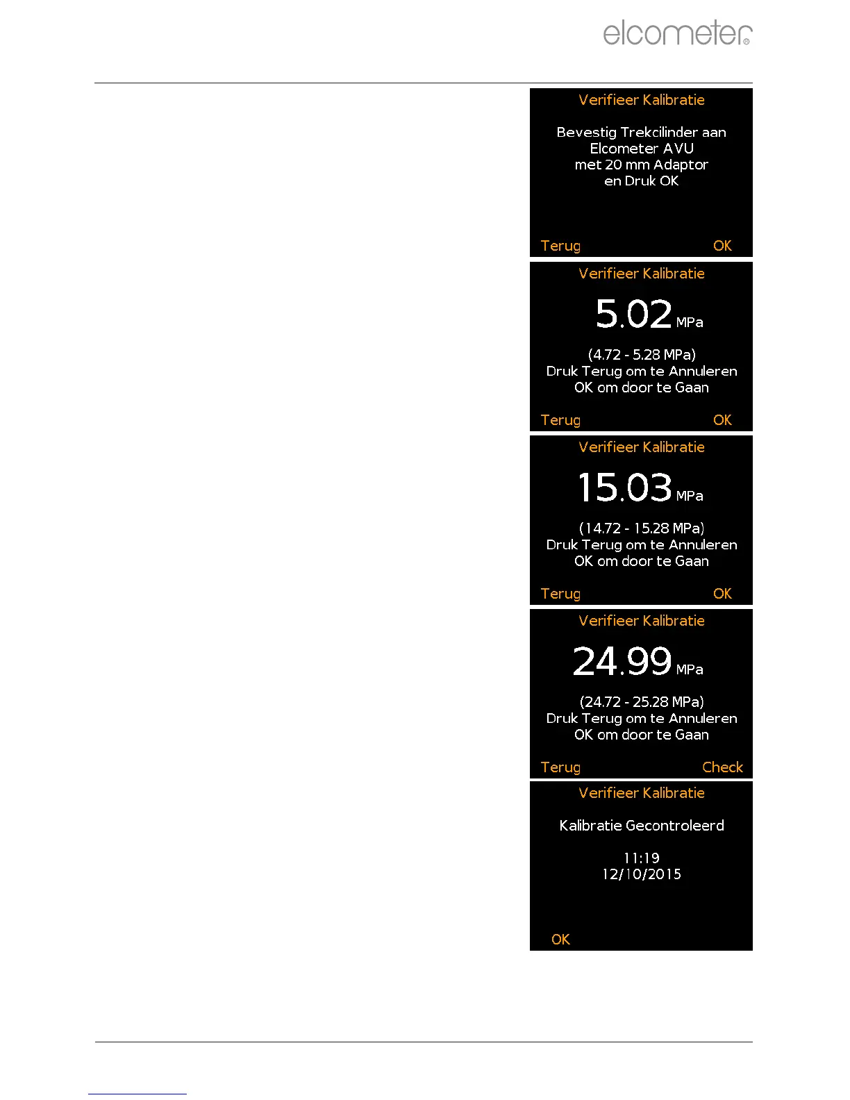 4 Druk op de Elcometer 510 op 'Ok' als de