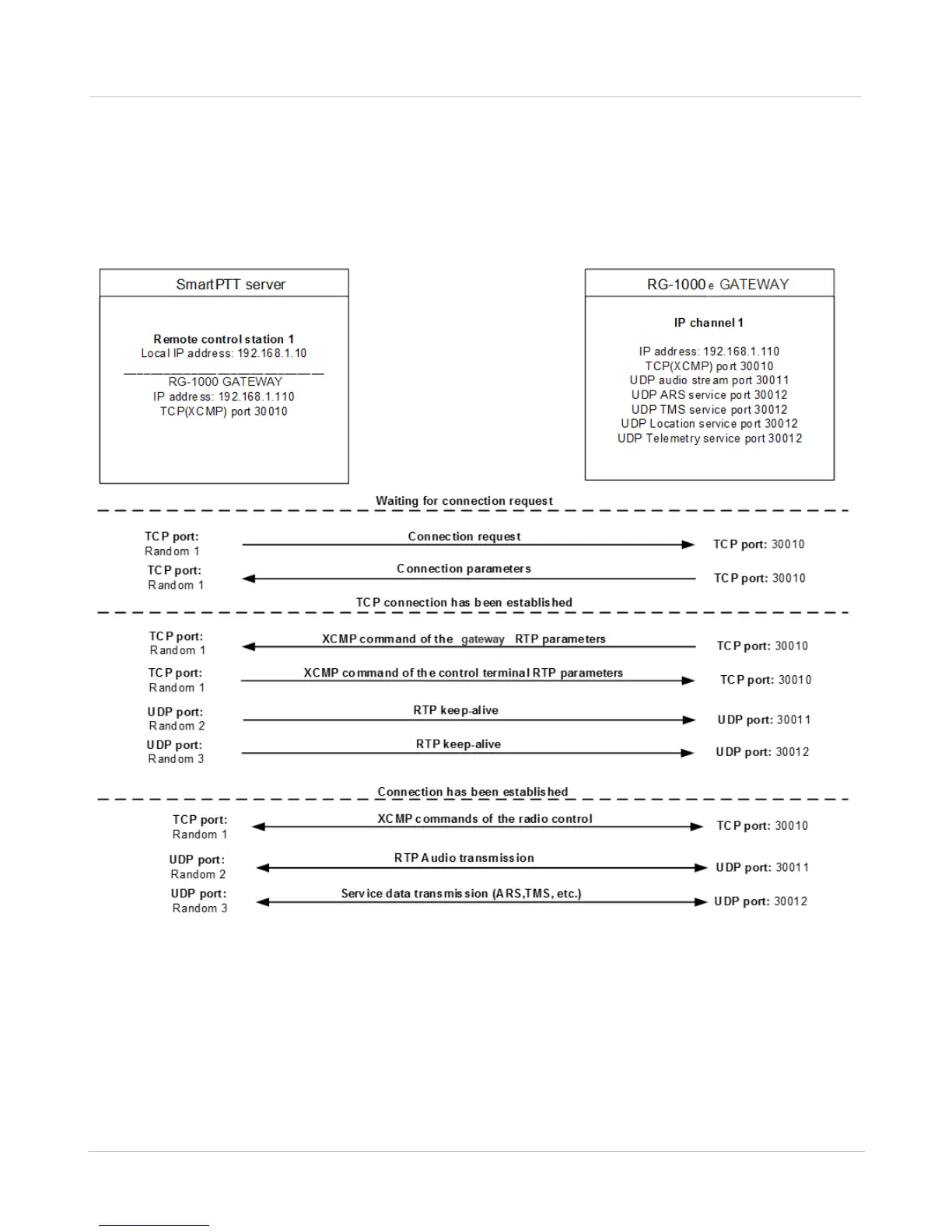To control the connection and the entries in the NAT table, the radioserver and RG-1000e GATEWAY exchange