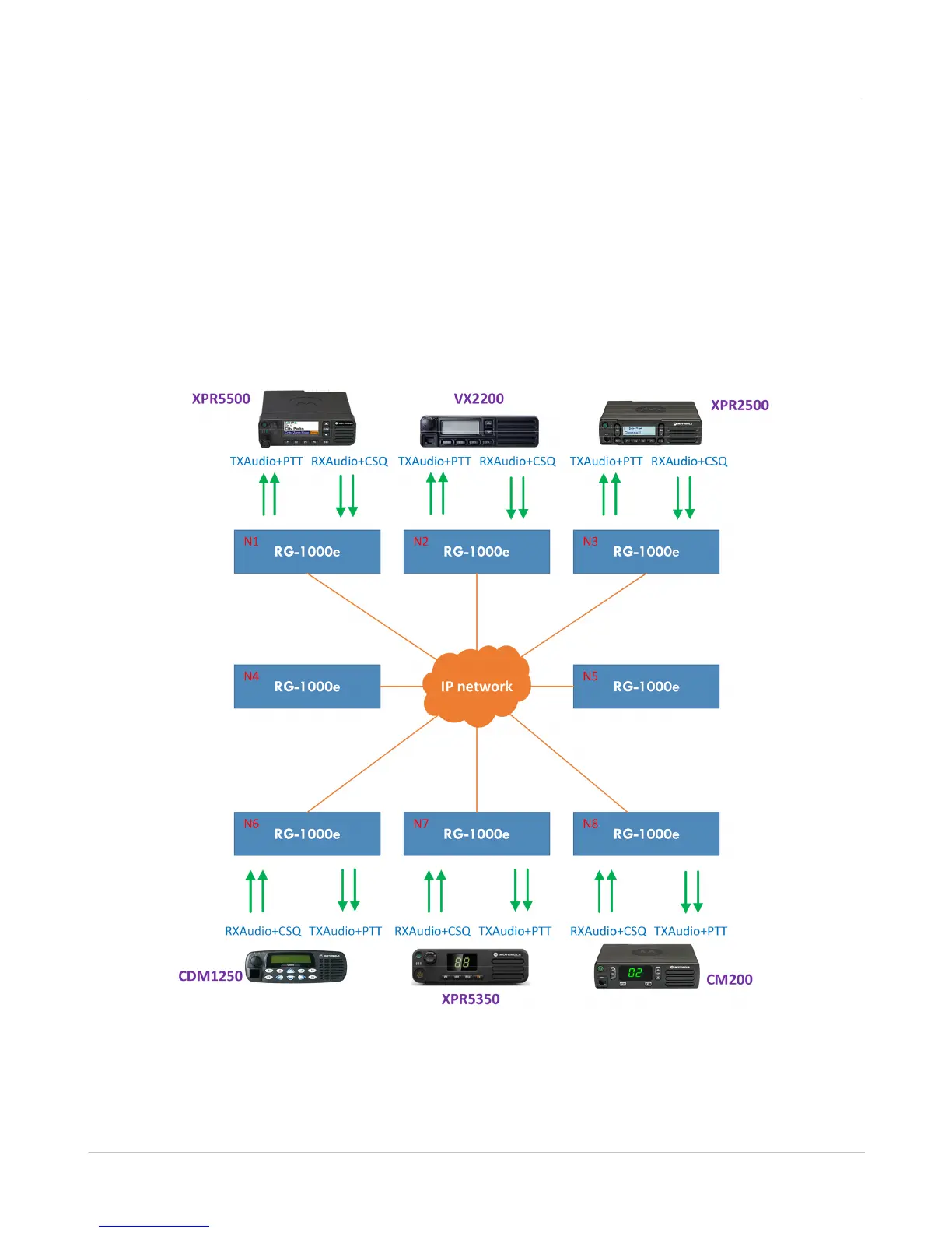 radio networks. In Repeater mode mobile radios and\or repeaters (analog or digital) are connected to the RG-