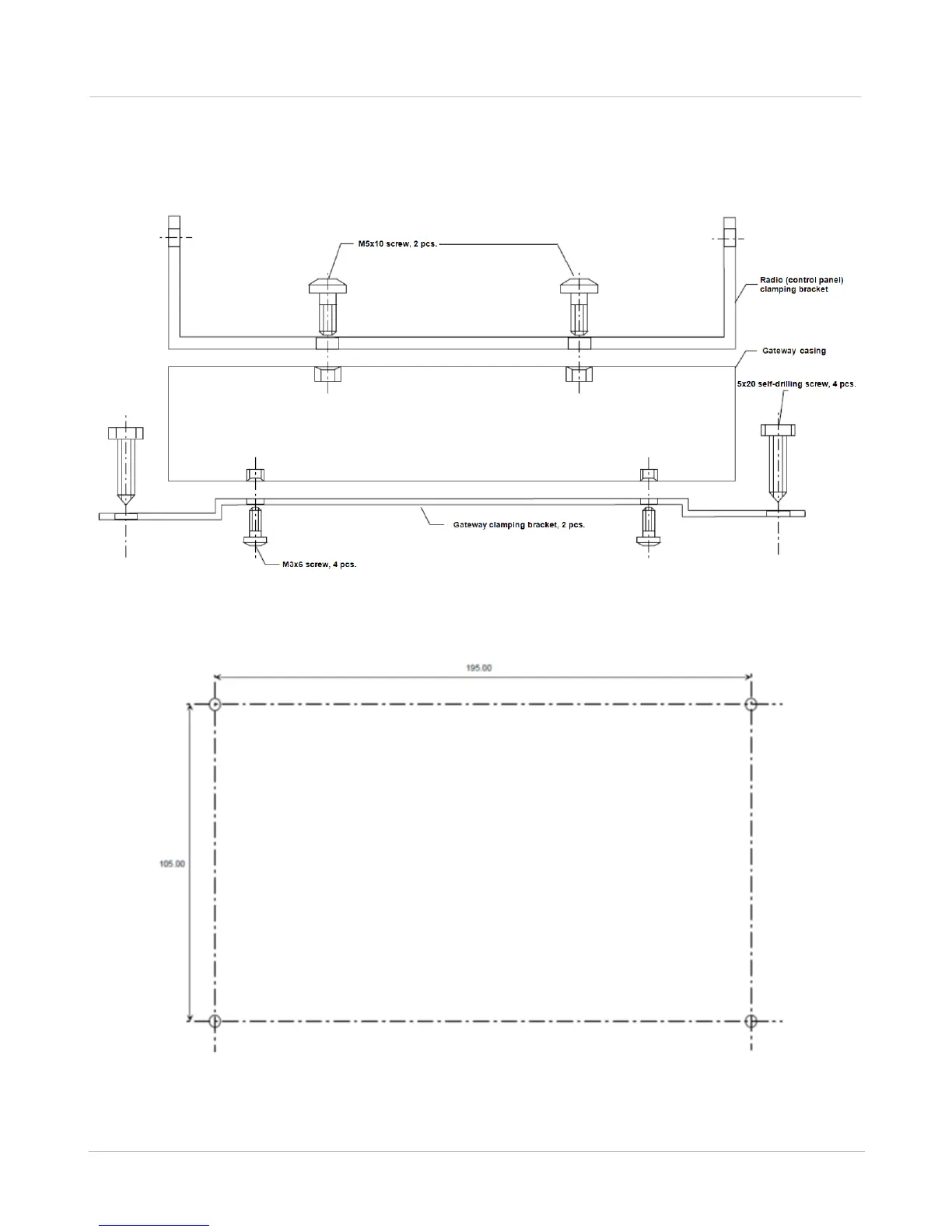 The clamping elements of the RG-1000e GATEWAYs and the radio bracket are shown in the figure below.
