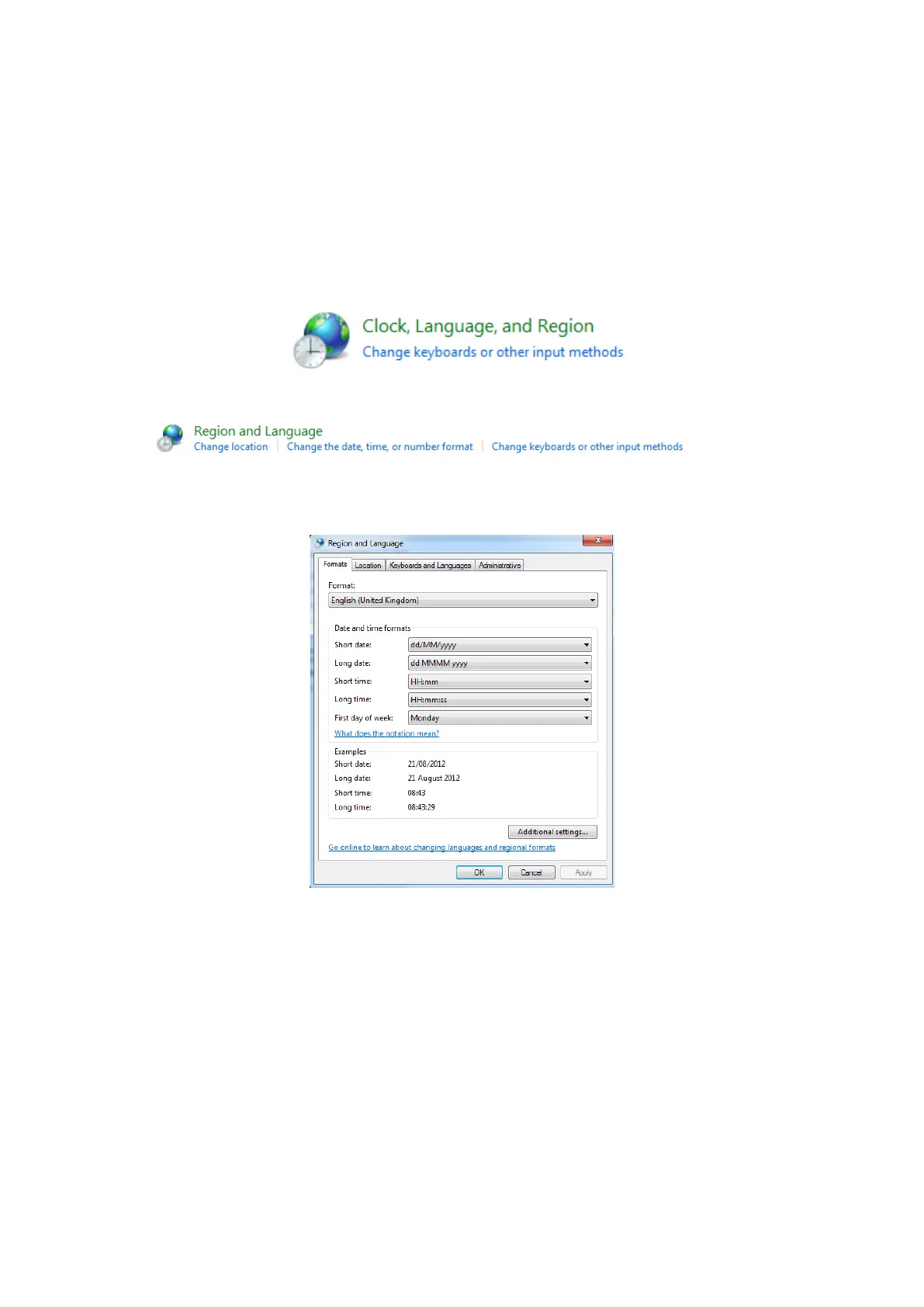 Selection Region & Language / Change the date, time or number format