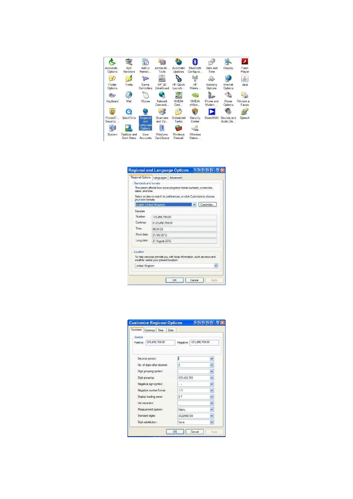 Select Control Panel and “Regional & Language Options”