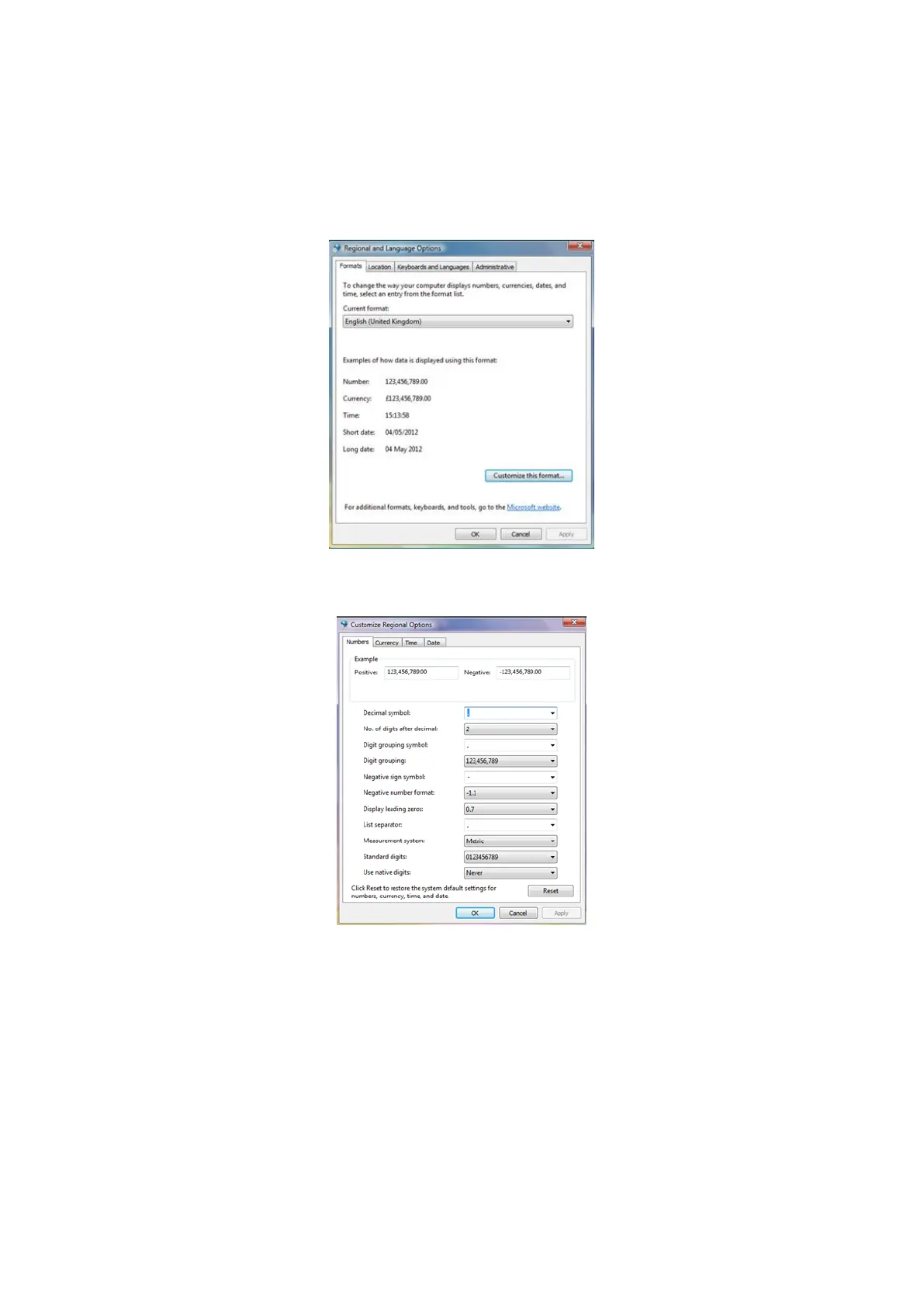 Next, select “Currency”. Ensure that the Decimal symbol is a full stop (.)