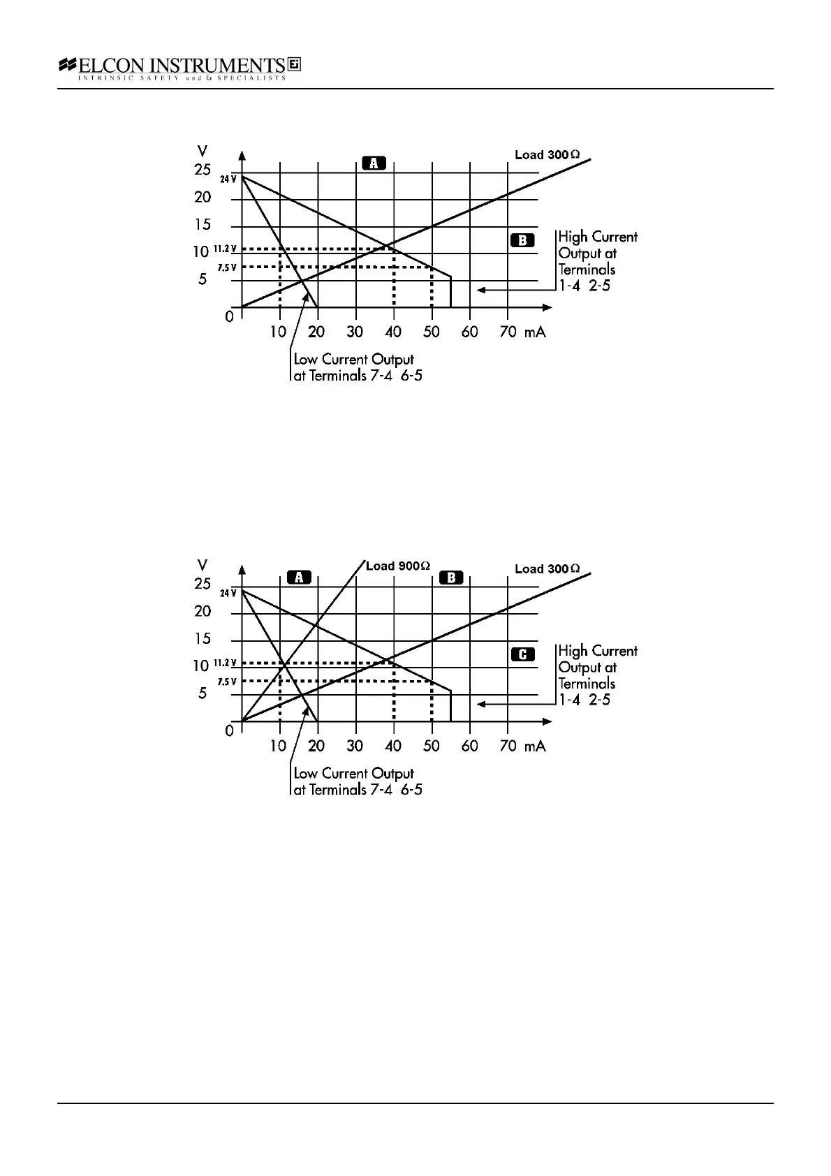• with a high load ( C zone, Rload<300 Ω ), besides to the previous cautions, it can be necessary to alternate