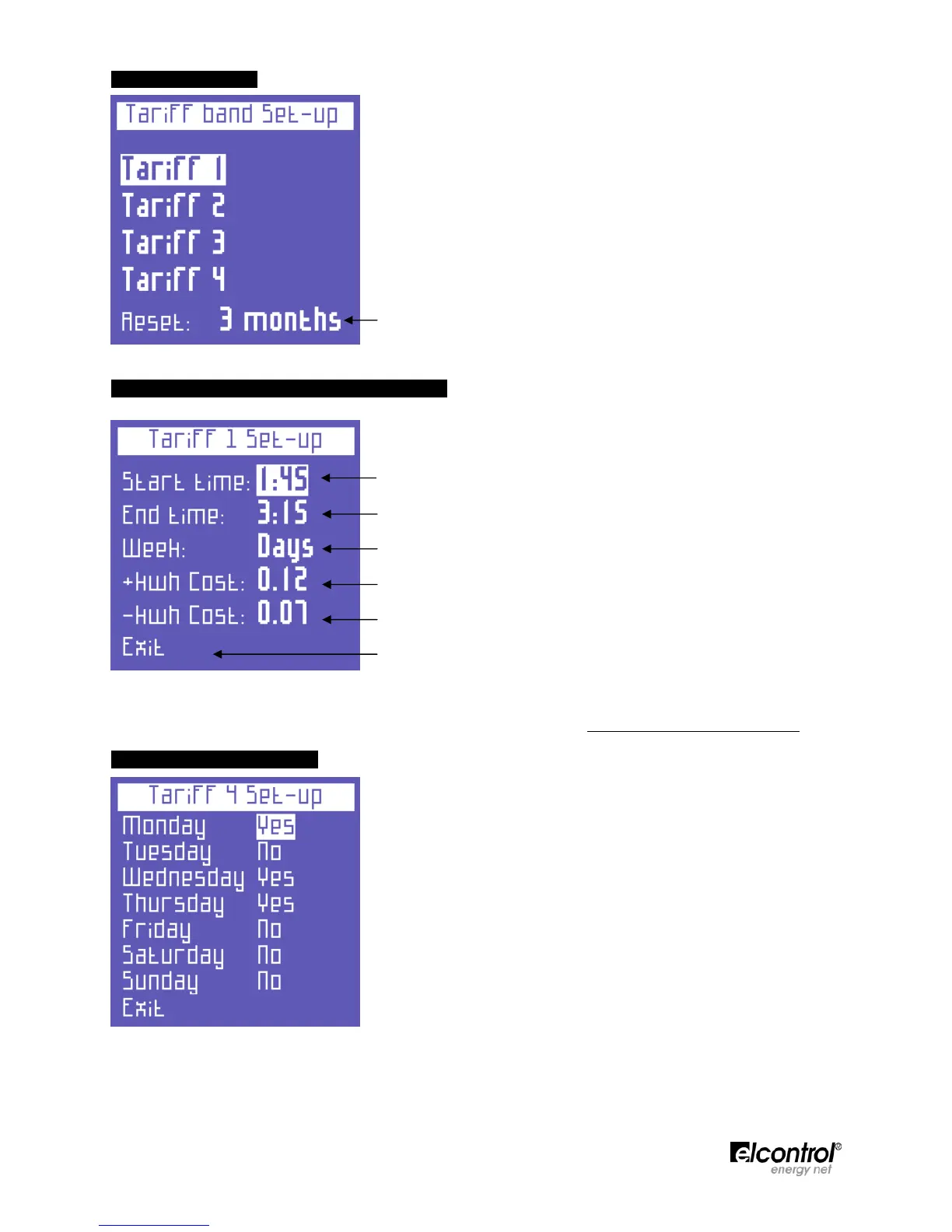 This page allows the user to set the days on which the tariff will be