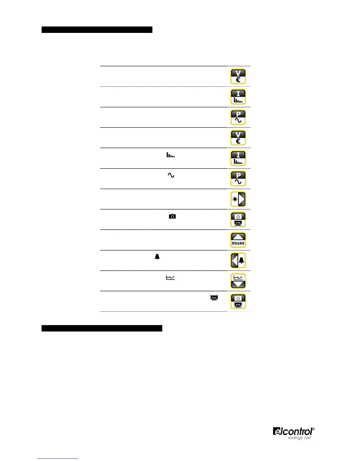 In the Voltage, Currents, Power, Counters, Harmonics, and Waveforms Menus, press to access the relevant