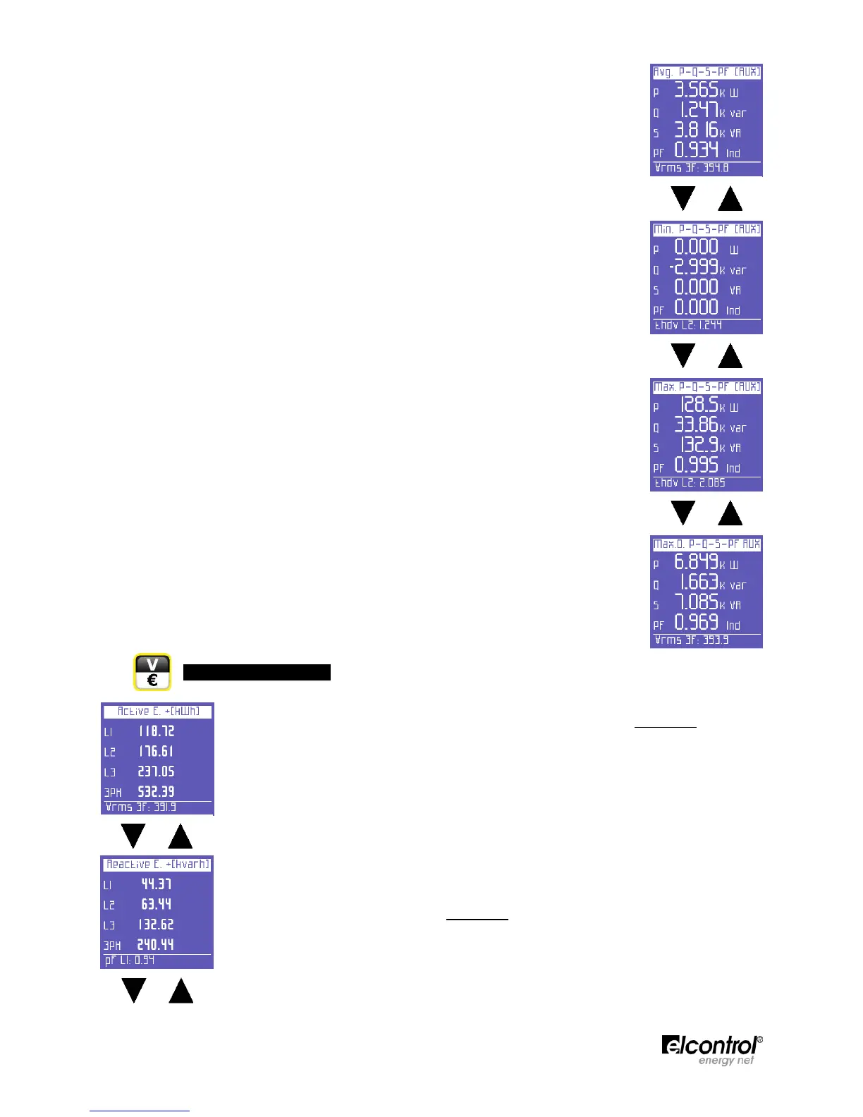 Maximum instant values of power and PF (values can be reset as described in Sect.