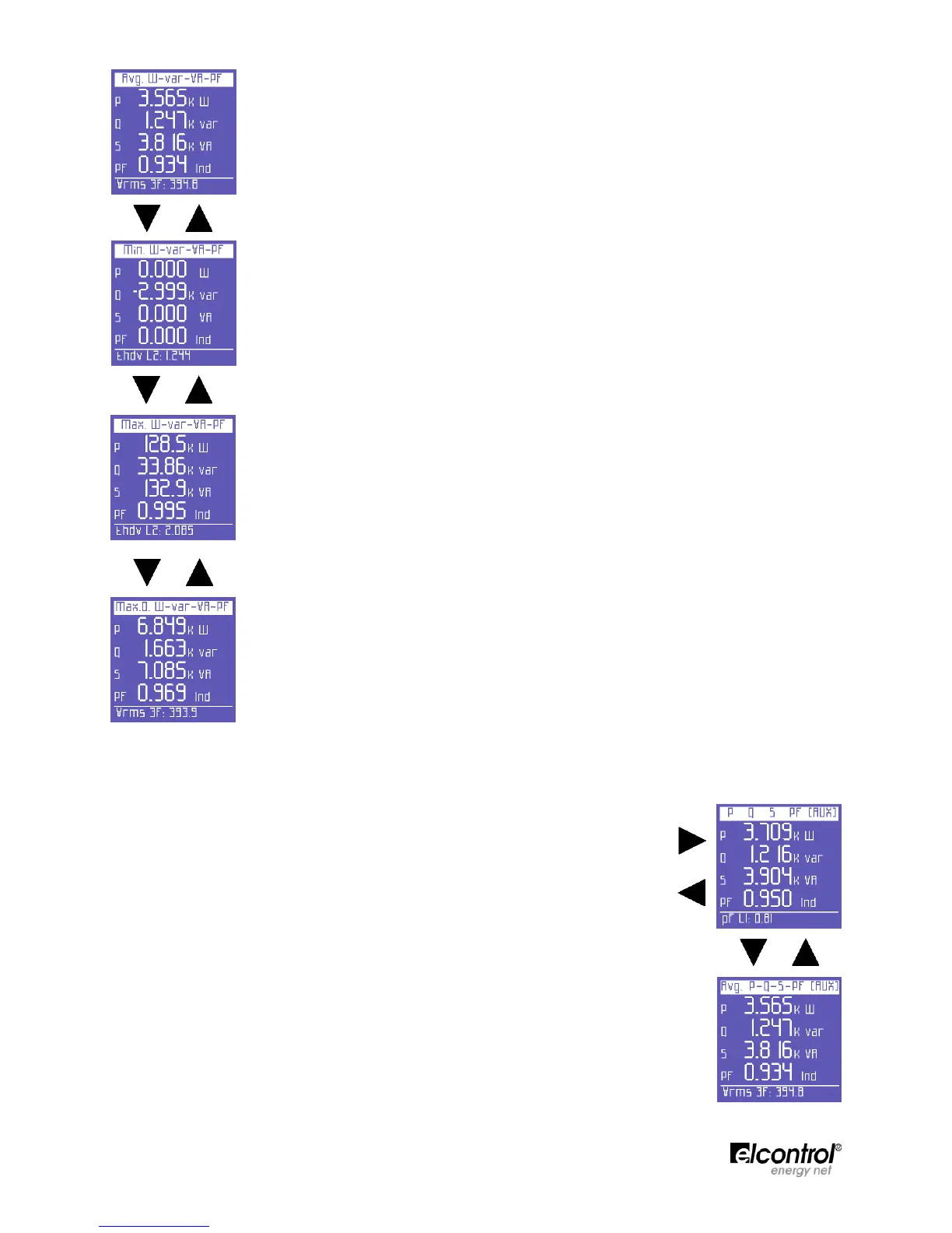active, reactive and apparent power, as well as the PF. Use and arrows to