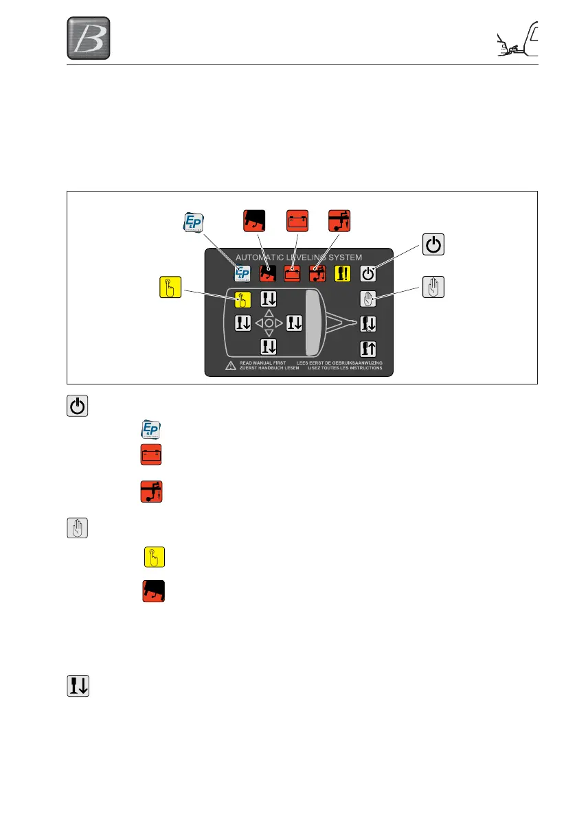 The E&P-logo LED lights up, indicating that the levelsystem is switched on.
