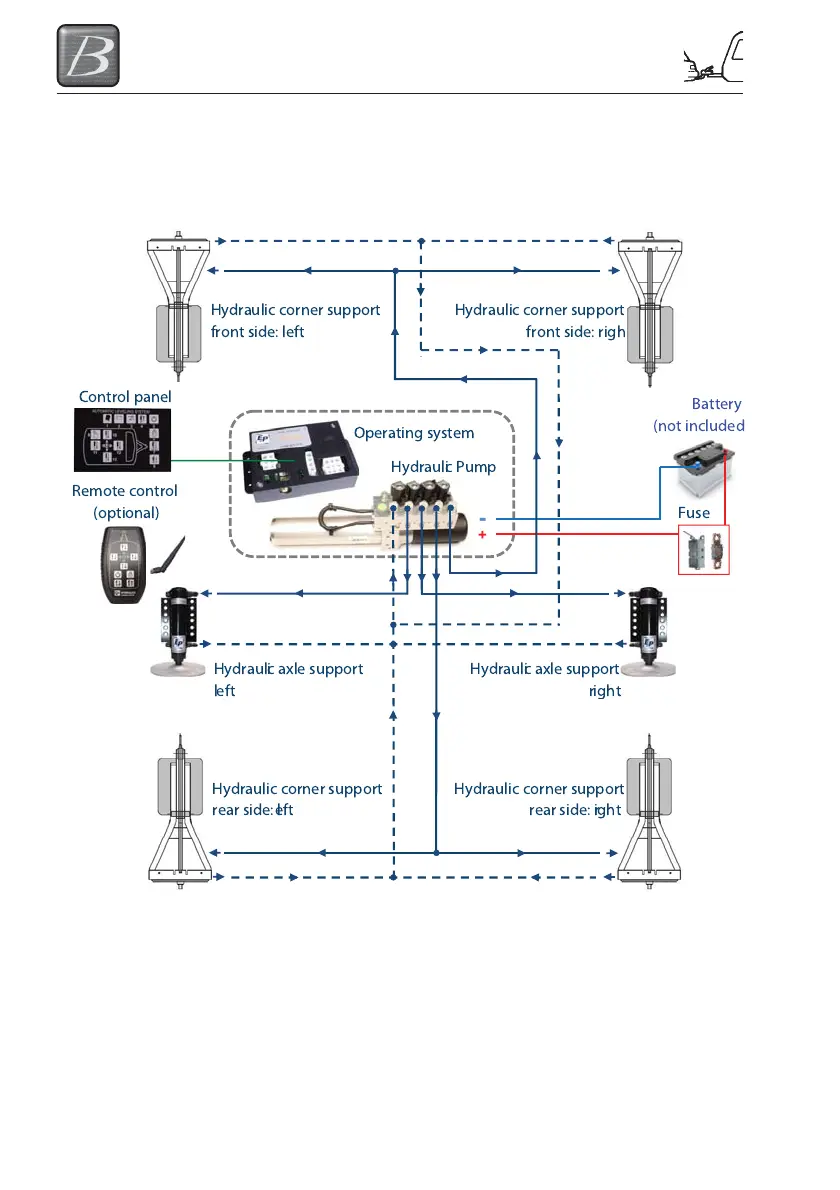 Below the schematic view/diagram of the E&P Hydraulics levelsystem.