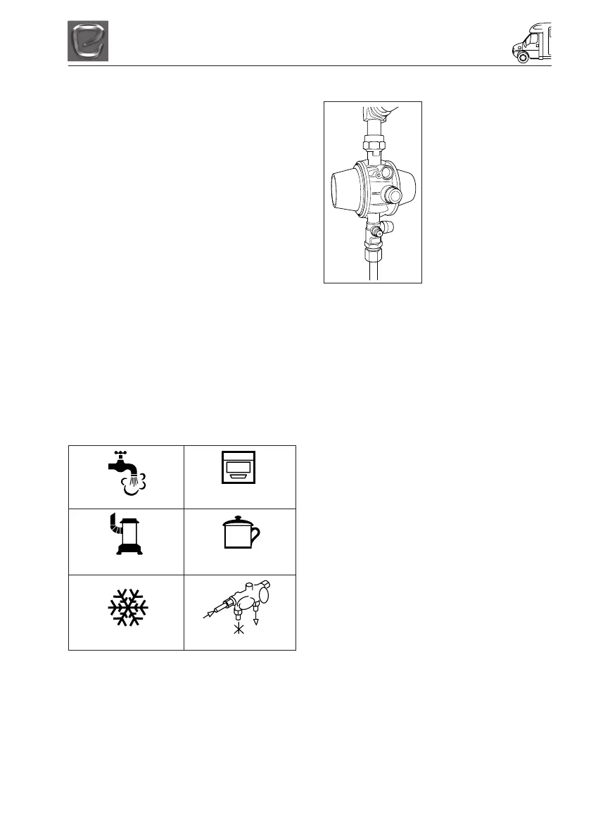 the regulator outlet falls below 27 mbar (due