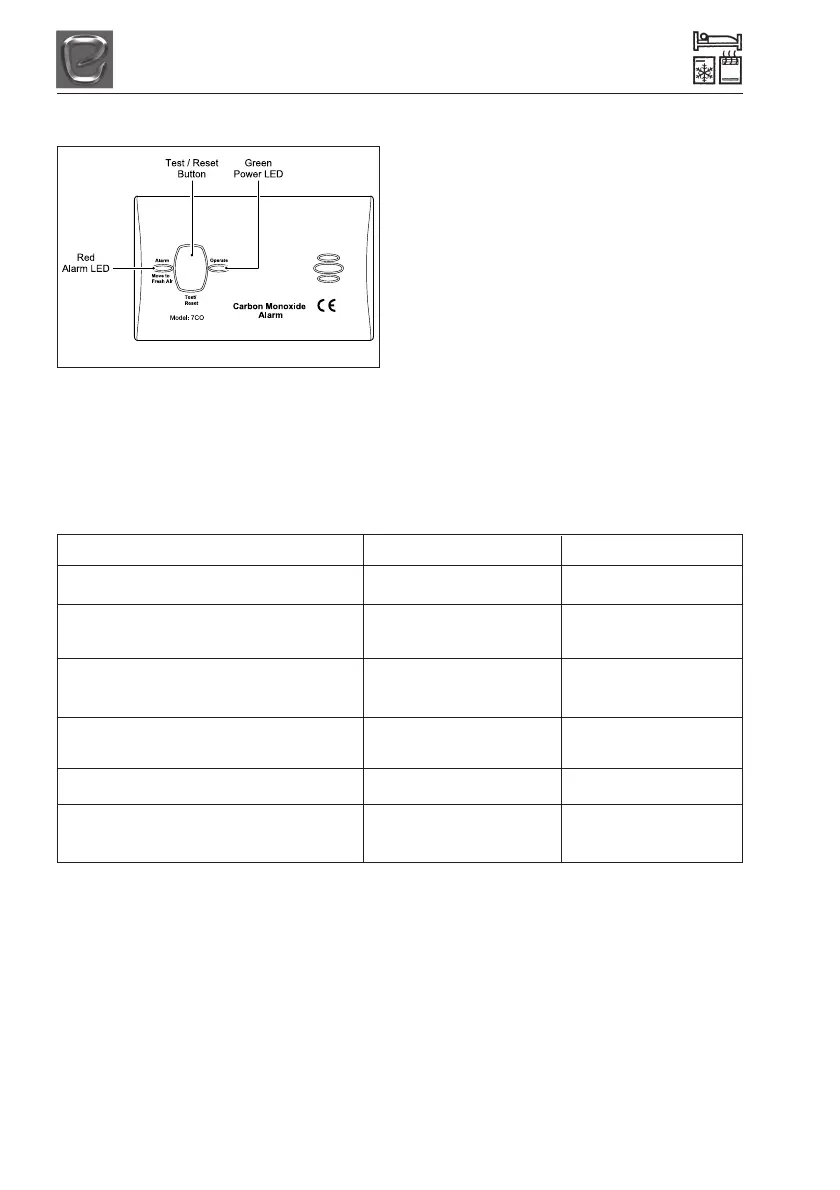Loud continuous alarm with the red LED Dangerous levels of CO Follow emergency
