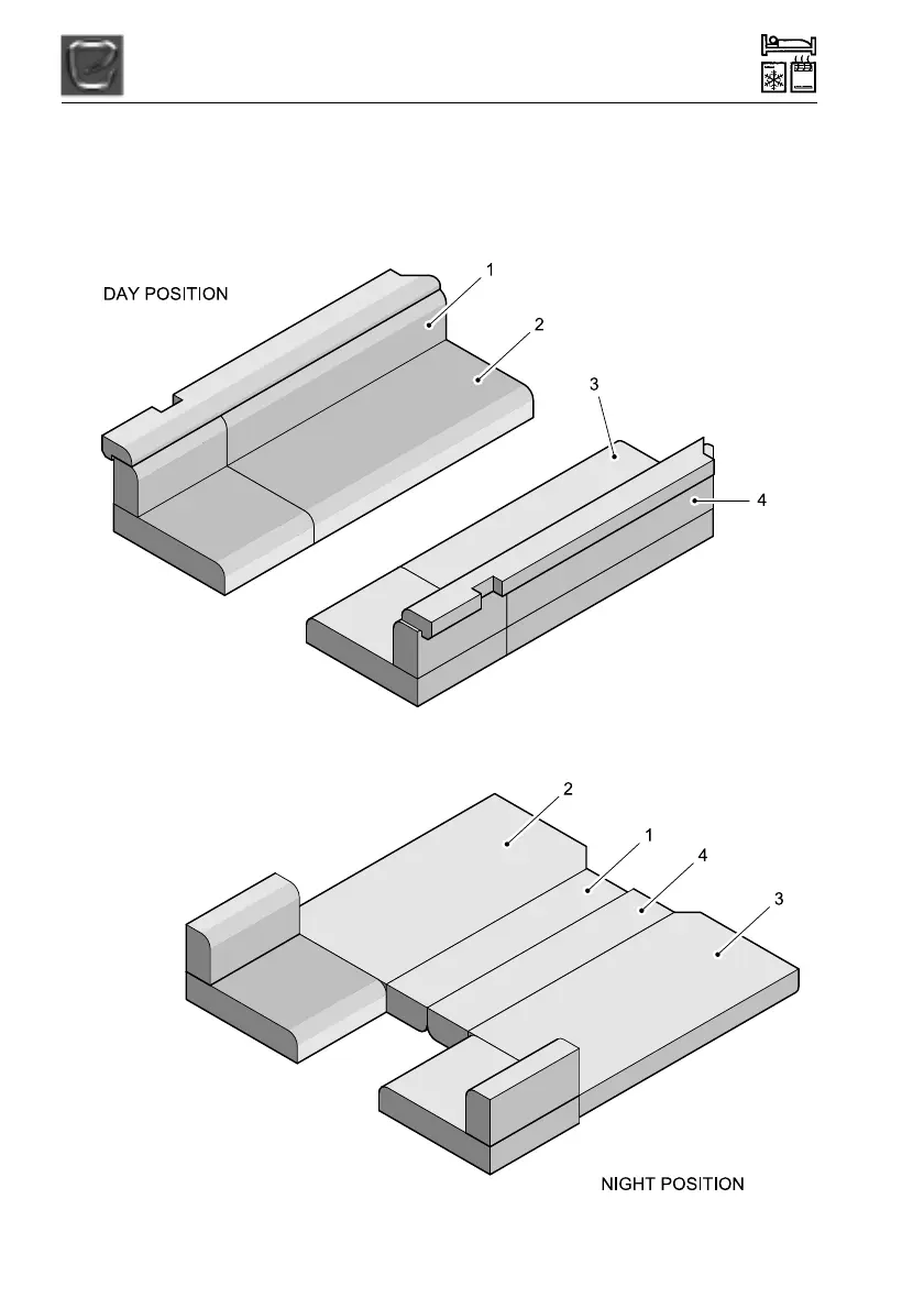 The front double bed is made up by lifting the two side beds up and pulling them together to