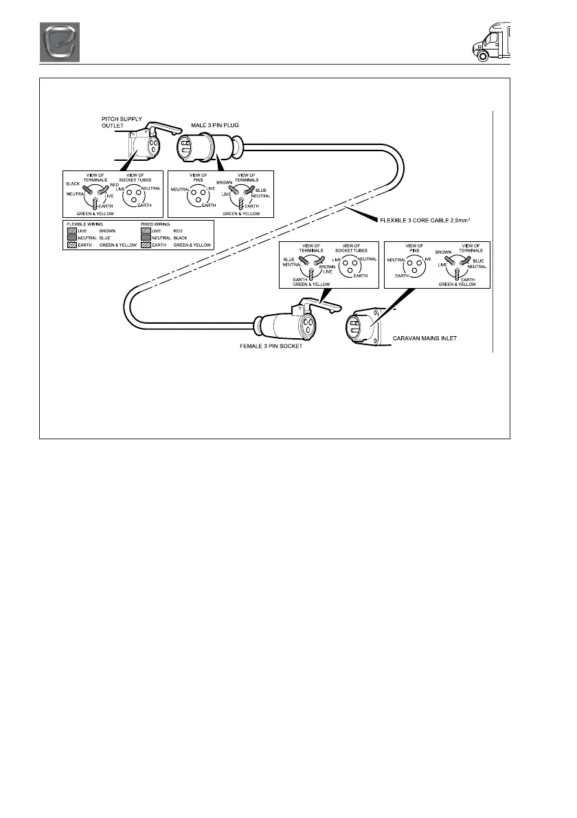 WIRING OF CONNECTING CABLE AND CAMPERVAN MAINS INLET