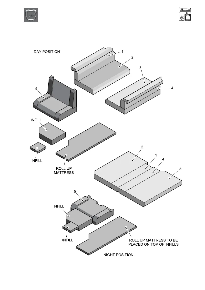 N.B. Turn driver seat 90 degrees anti-clockwise to make up front bed