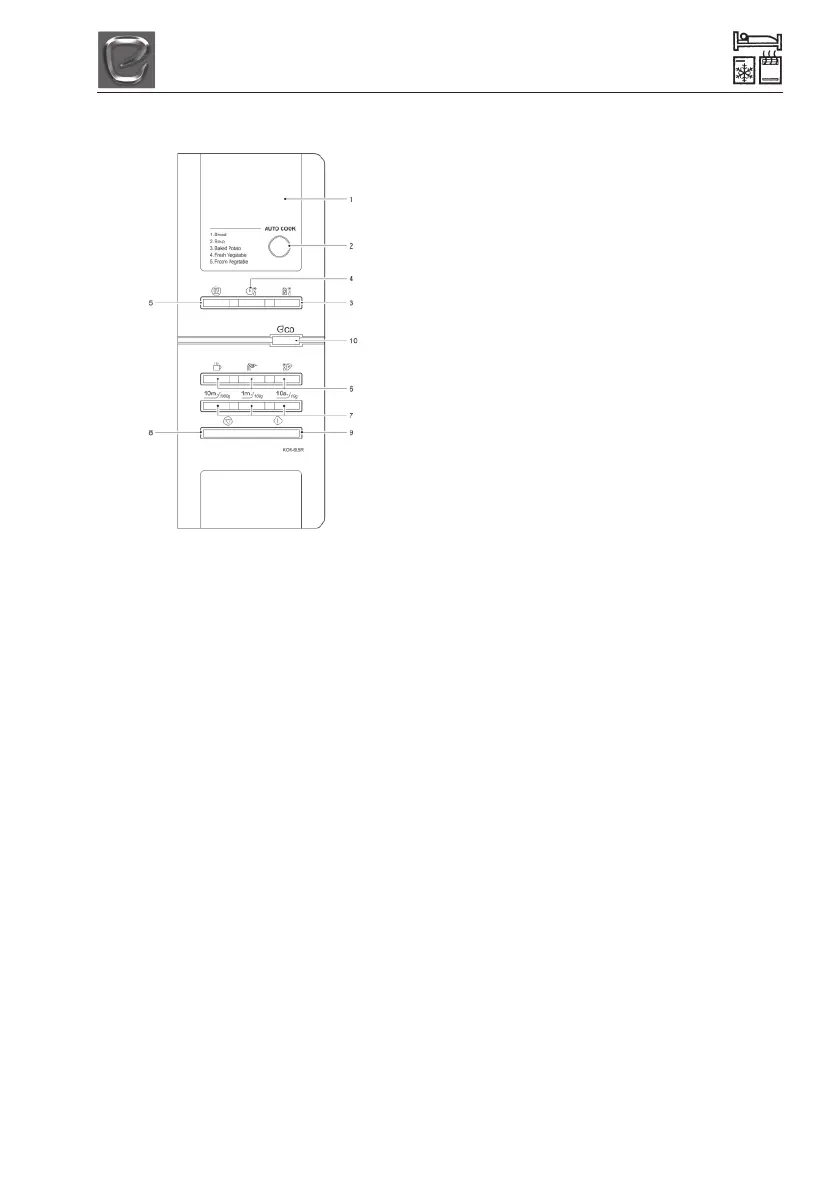 1 DISPLAY - Cooking time and power level are