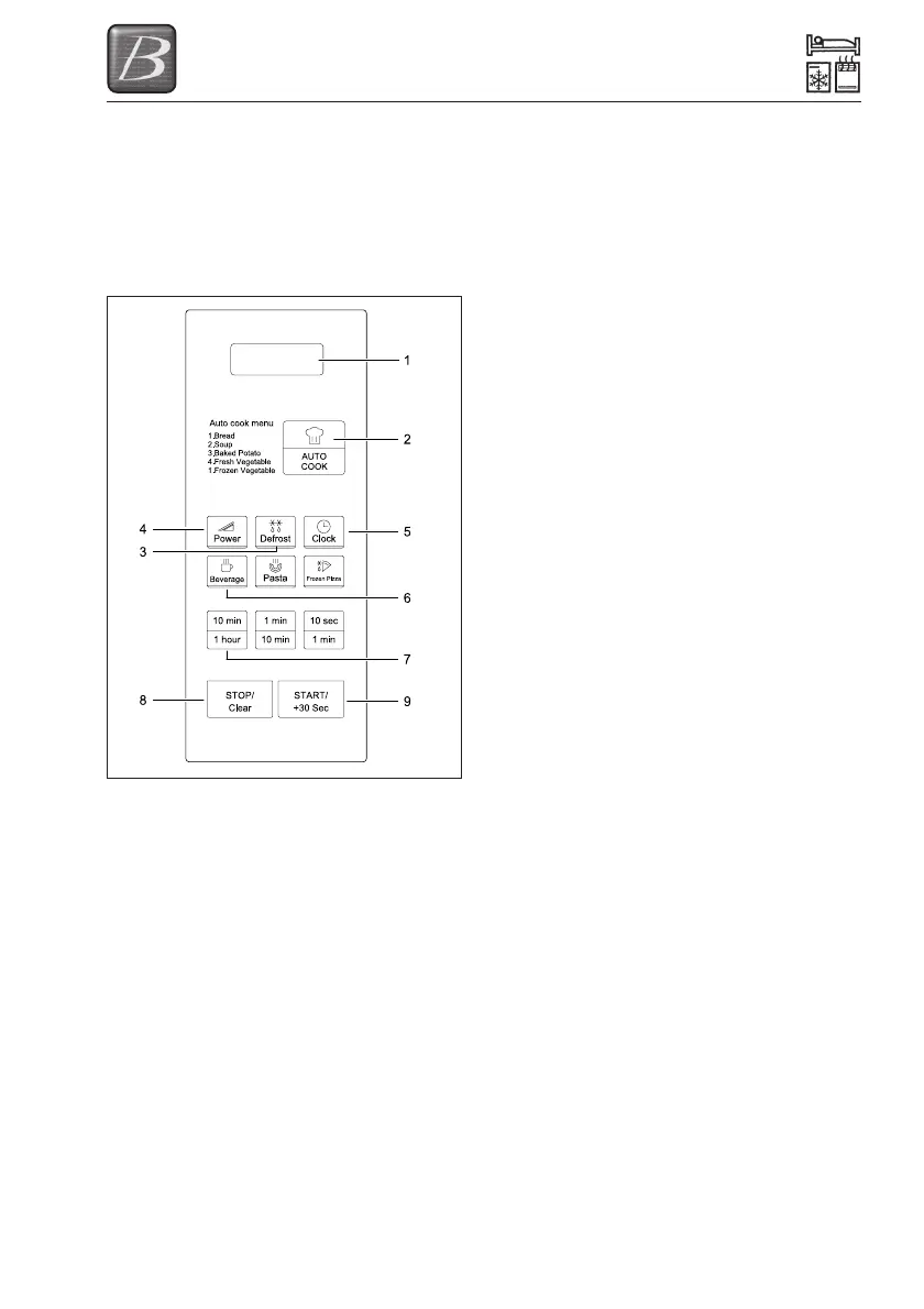 1. Display - Cooking time, power level,