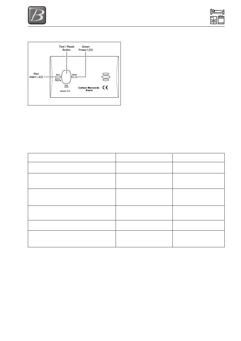 Loud continuous alarm with the red LED Dangerous levels of CO Follow emergency