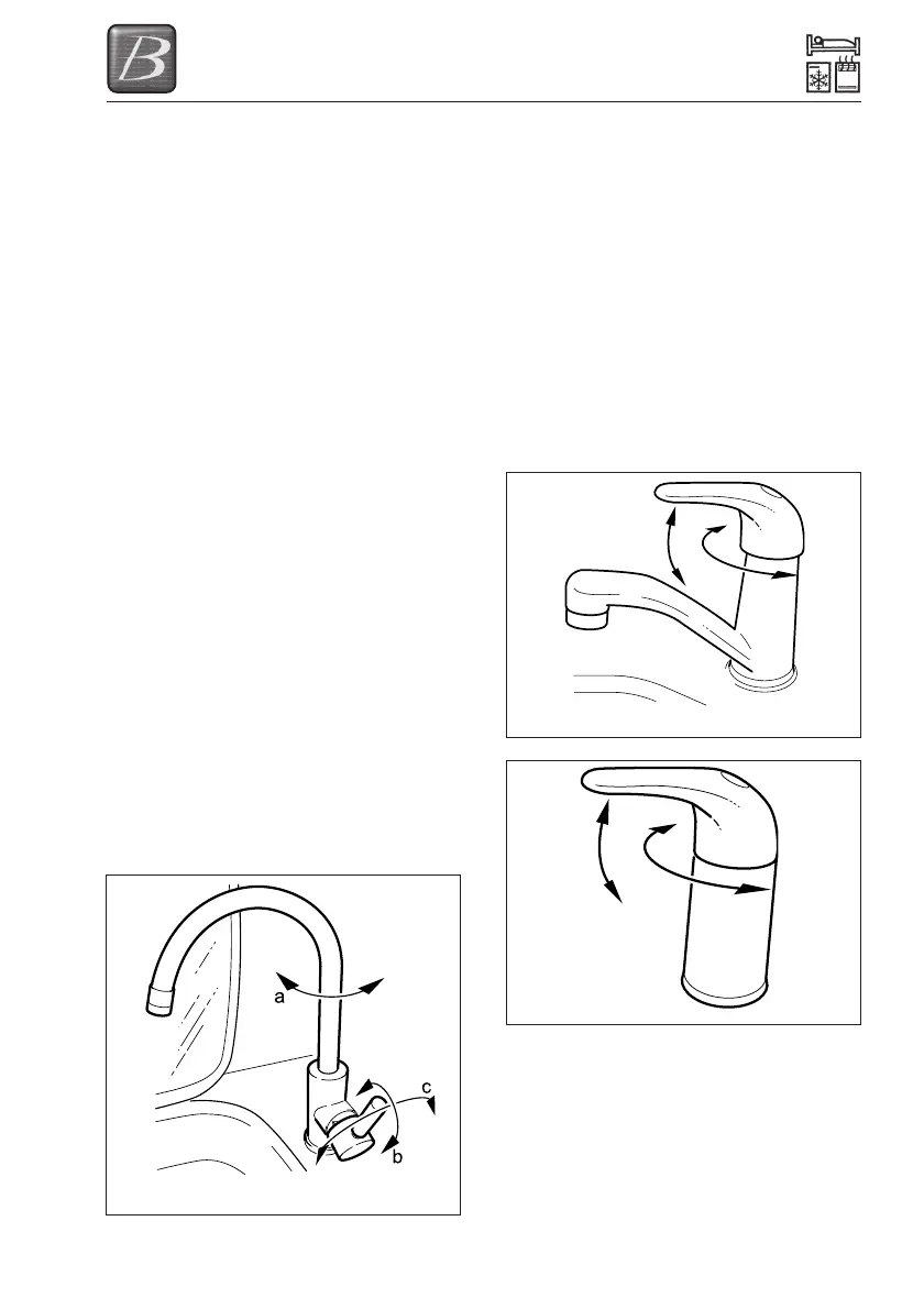 position over the sink, lift the control lever (b)