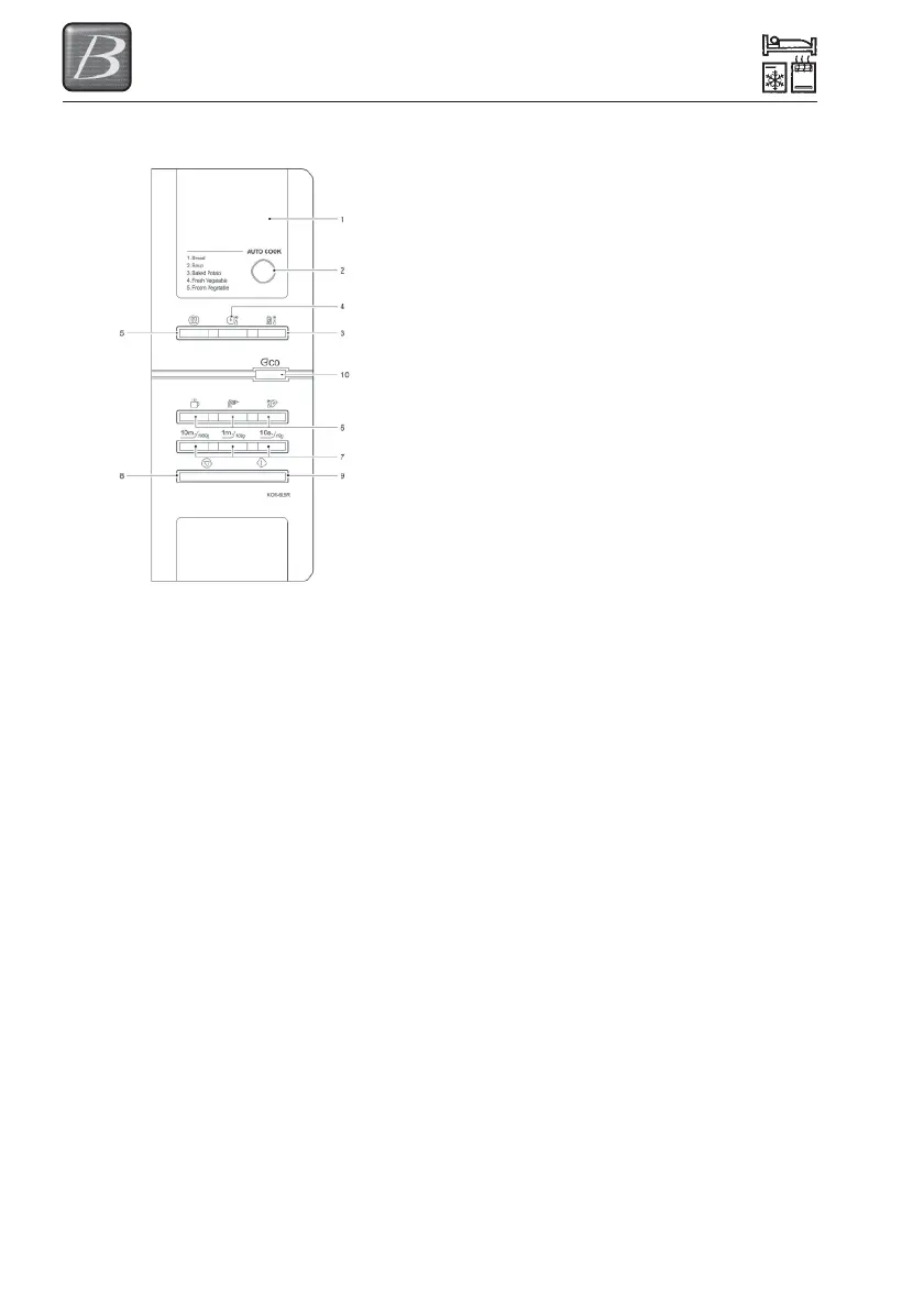 1 DISPLAY - Cooking time and power level are