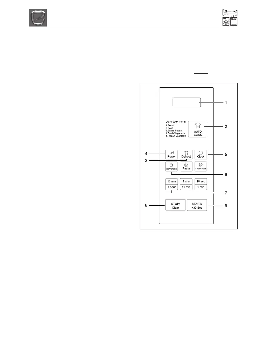 1. Display - Cooking time, power level,