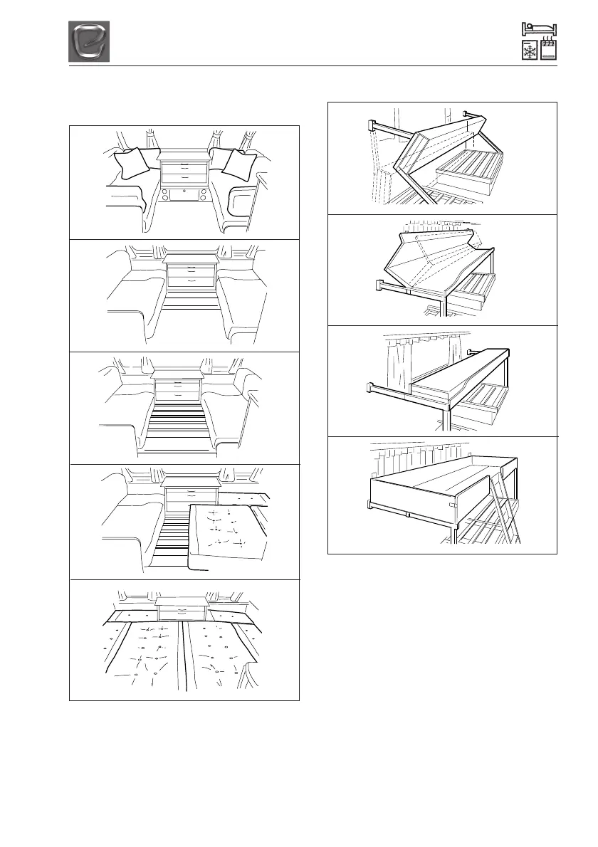 a double bed by pulling out the bed slats, stored