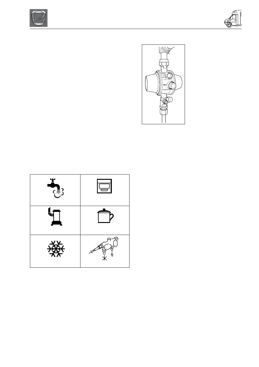 the regulator outlet falls below 27 mbar (due