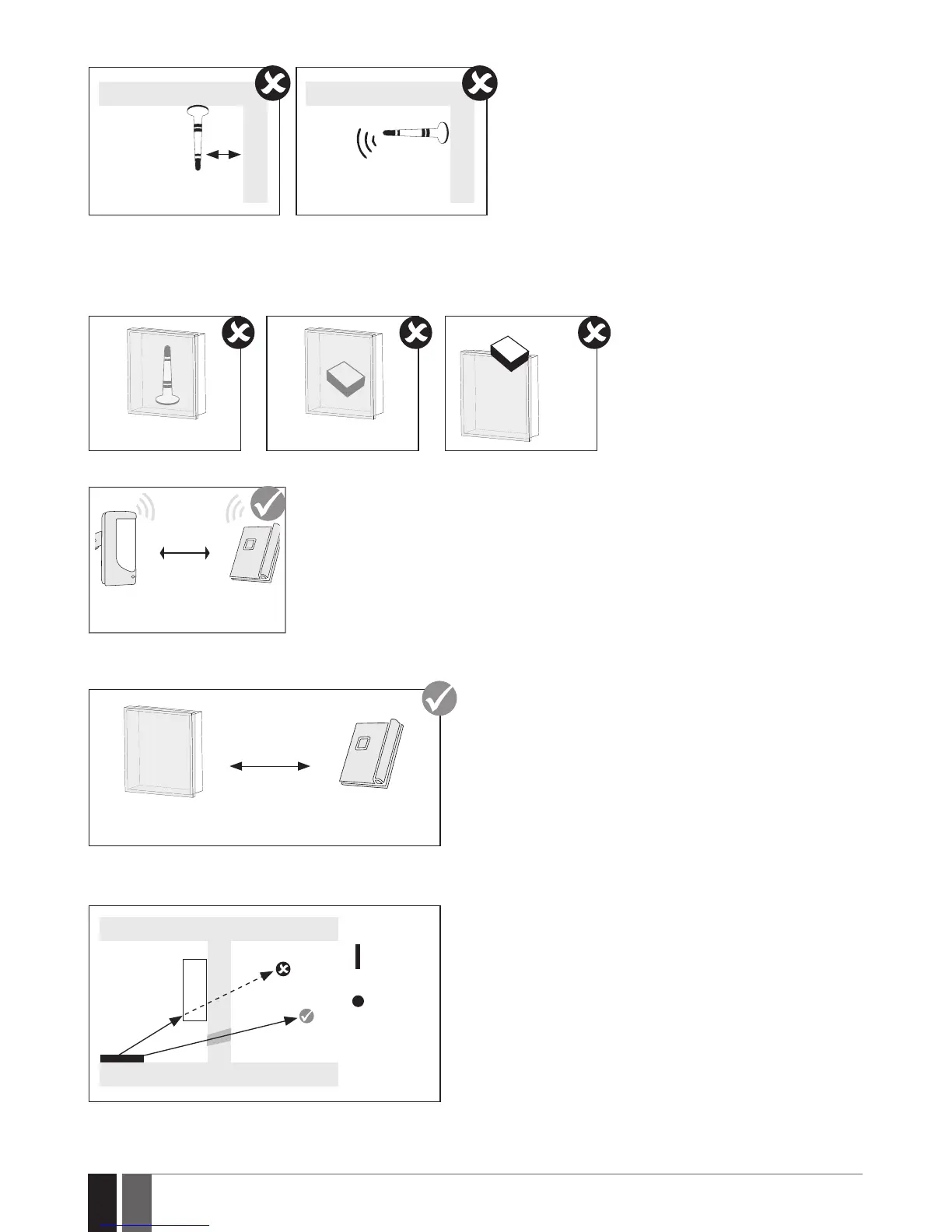 • Keep the distance of at least 20cm (7.87in) or more between your wireless device/Alarm System and the metal box/metal sheet or any