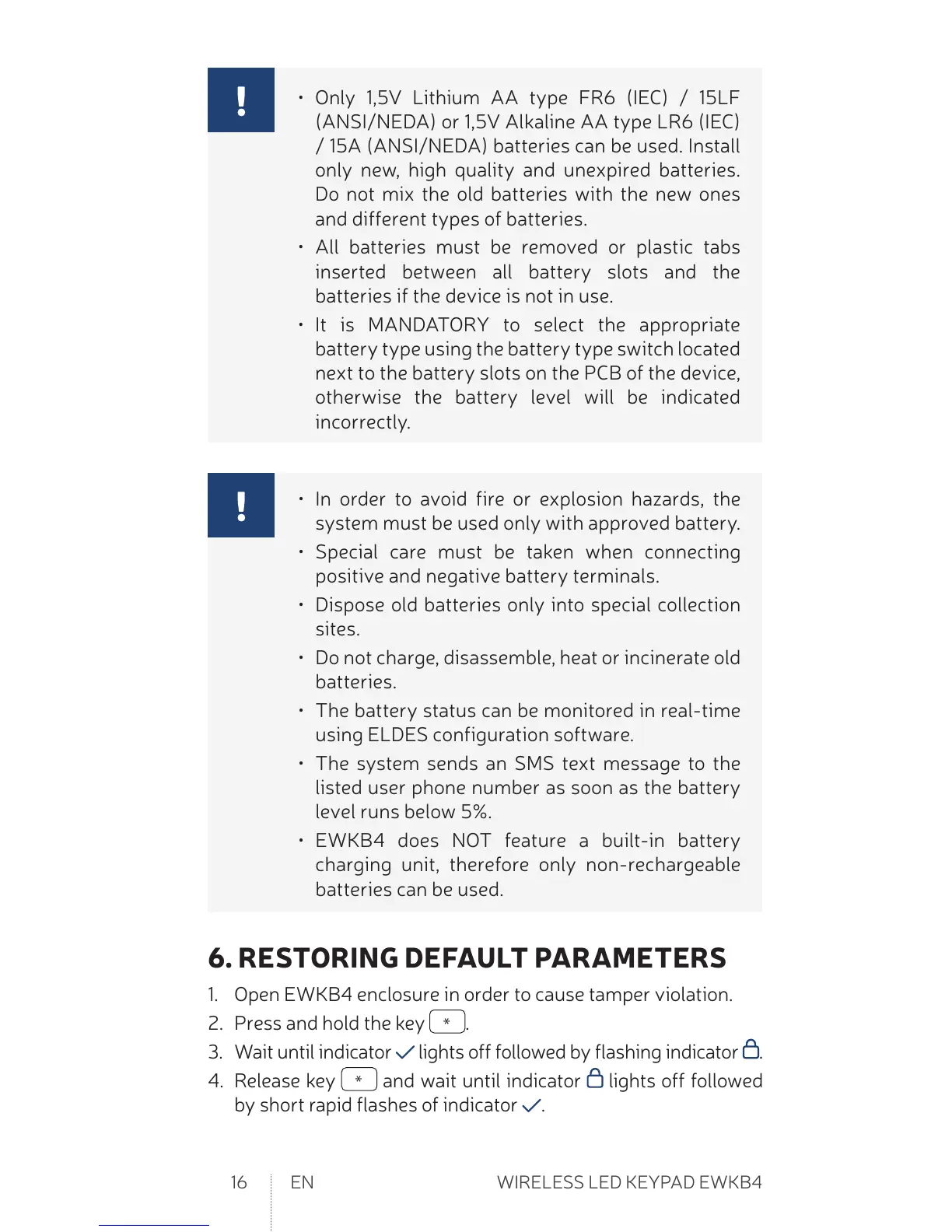 • Only 1,5V Lithium AA type FR6 (IEC) / 15LF