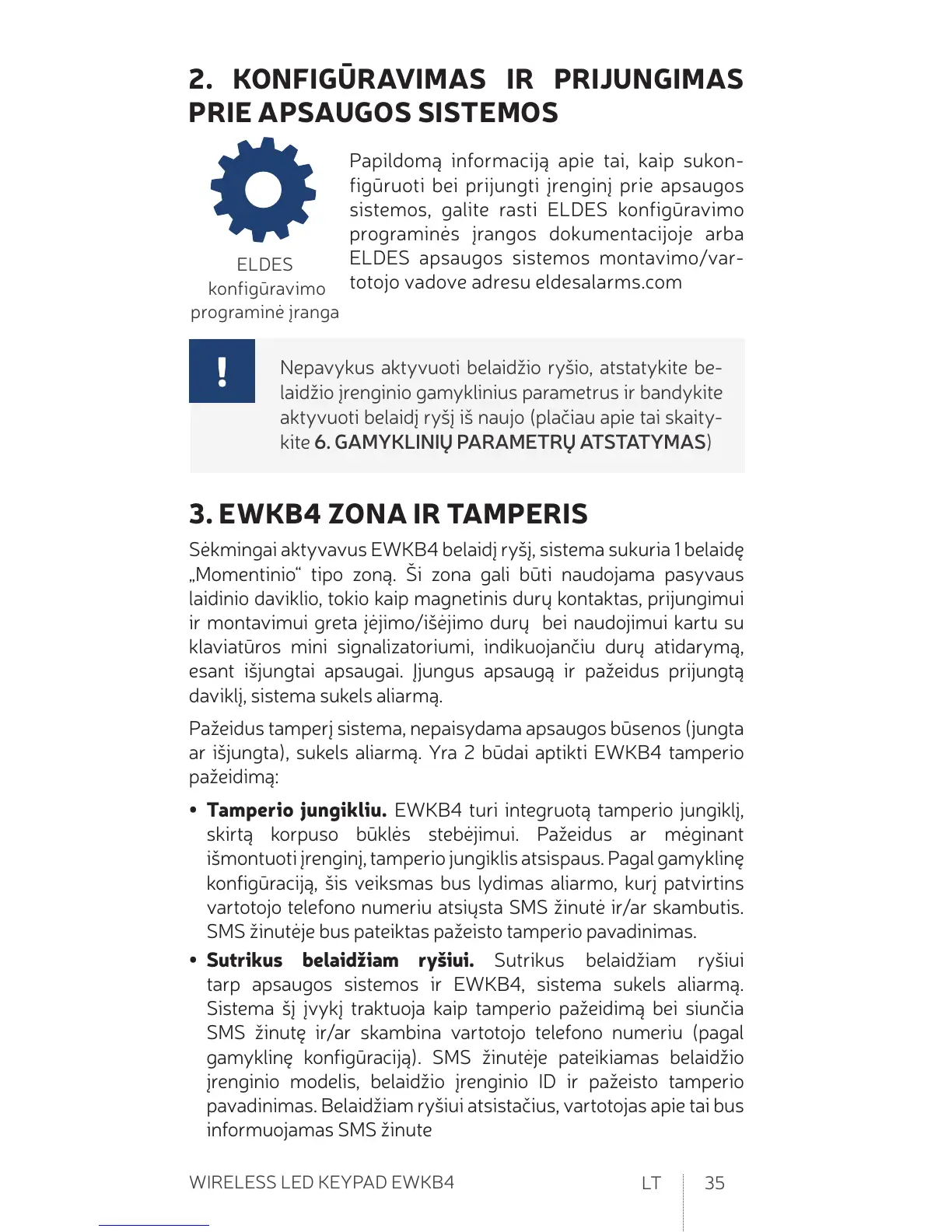 ar išjungta), sukels aliarmą. Yra 2 būdai apiki EWKB4 tamperio