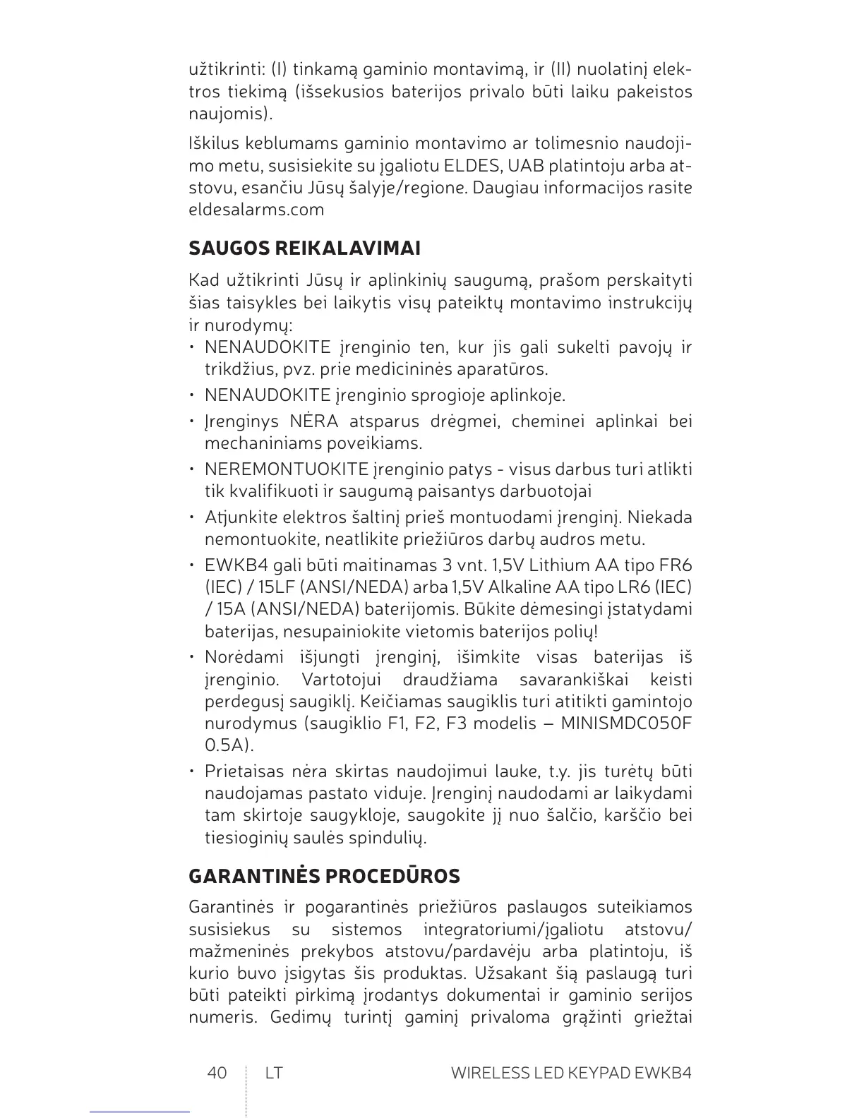 • EWKB4 gali būi maiinamas 3 vnt. 1,5V Lithium AA ipo FR6