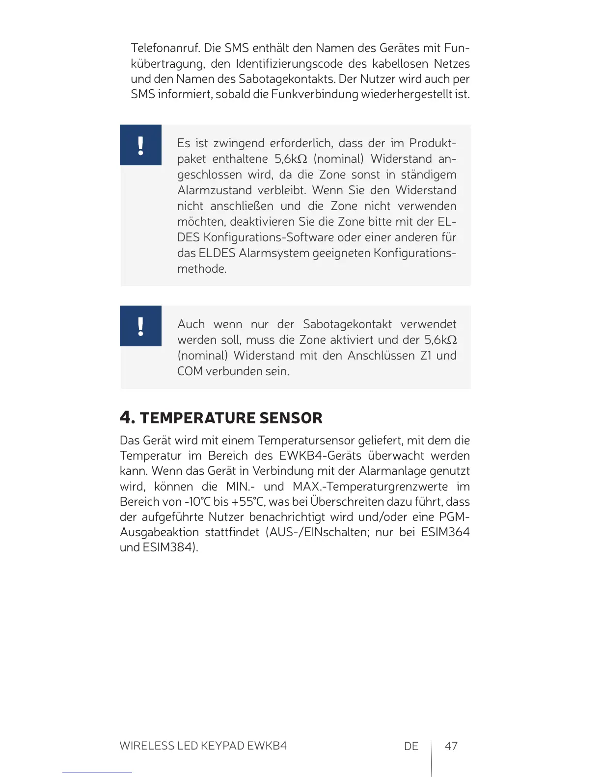 Temperatur im Bereich des EWKB4-Geräts überwacht werden