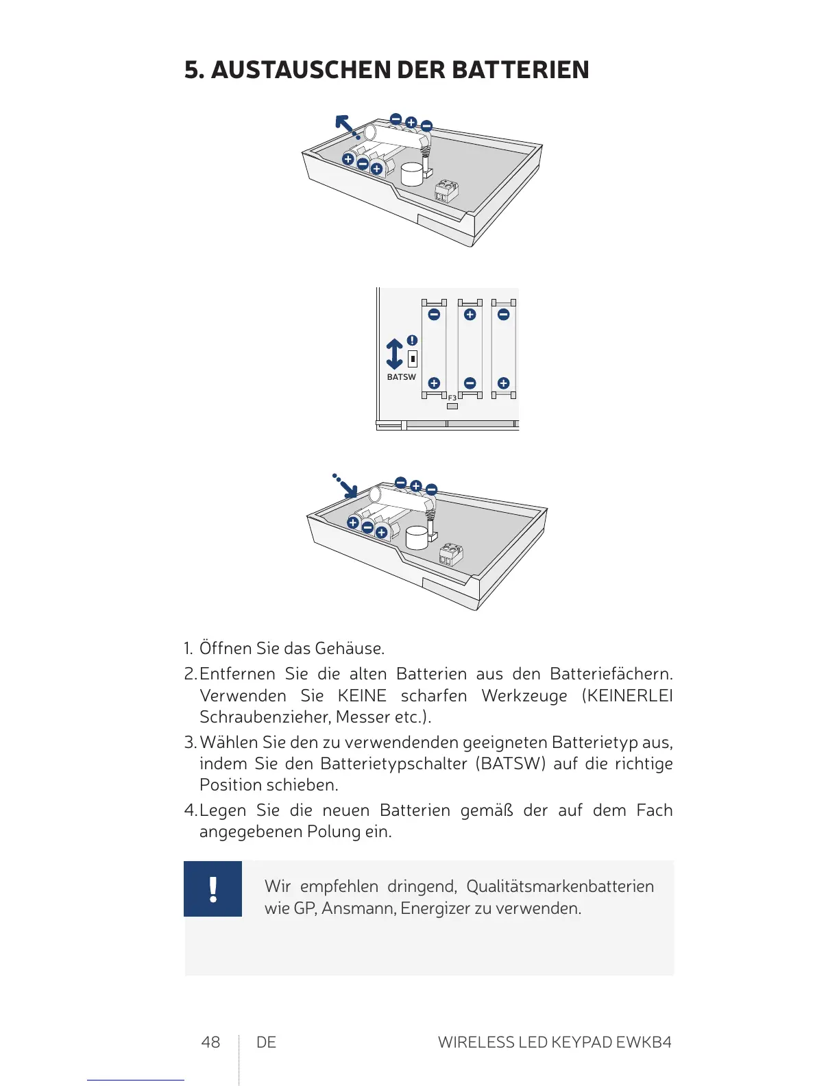 4. Legen Sie die neuen Baterien gemäß der auf dem Fach