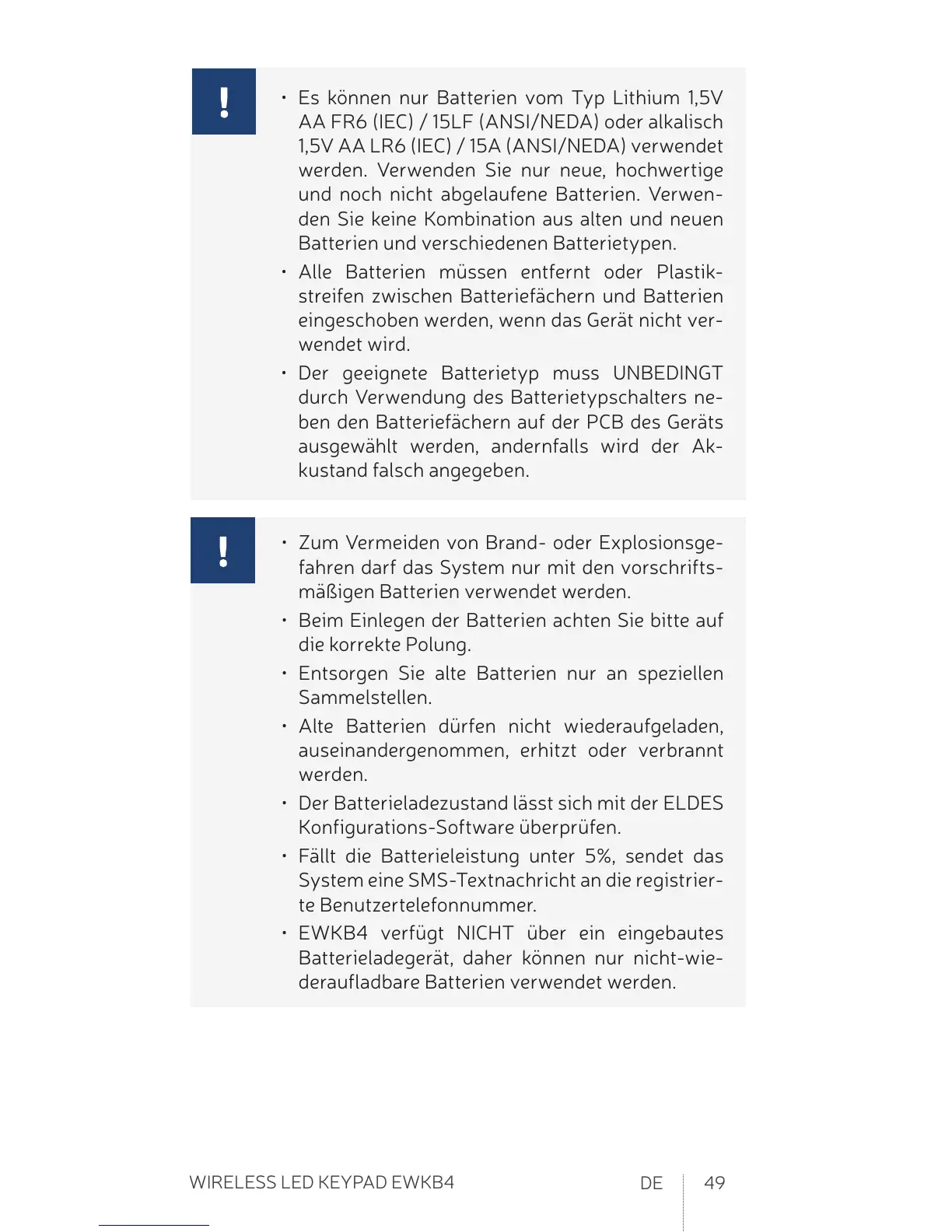 • Alte Baterien dürfen nicht wiederaufgeladen,